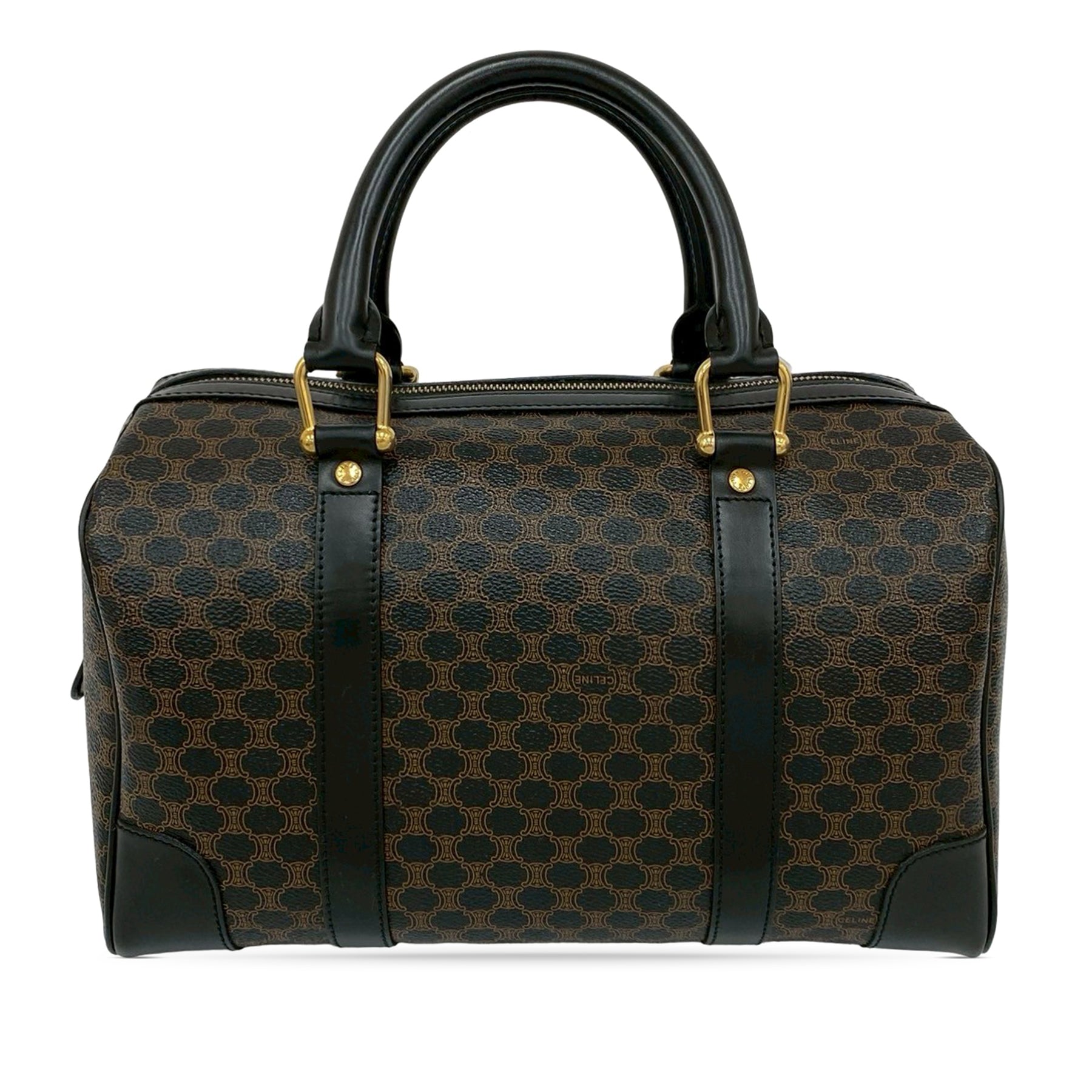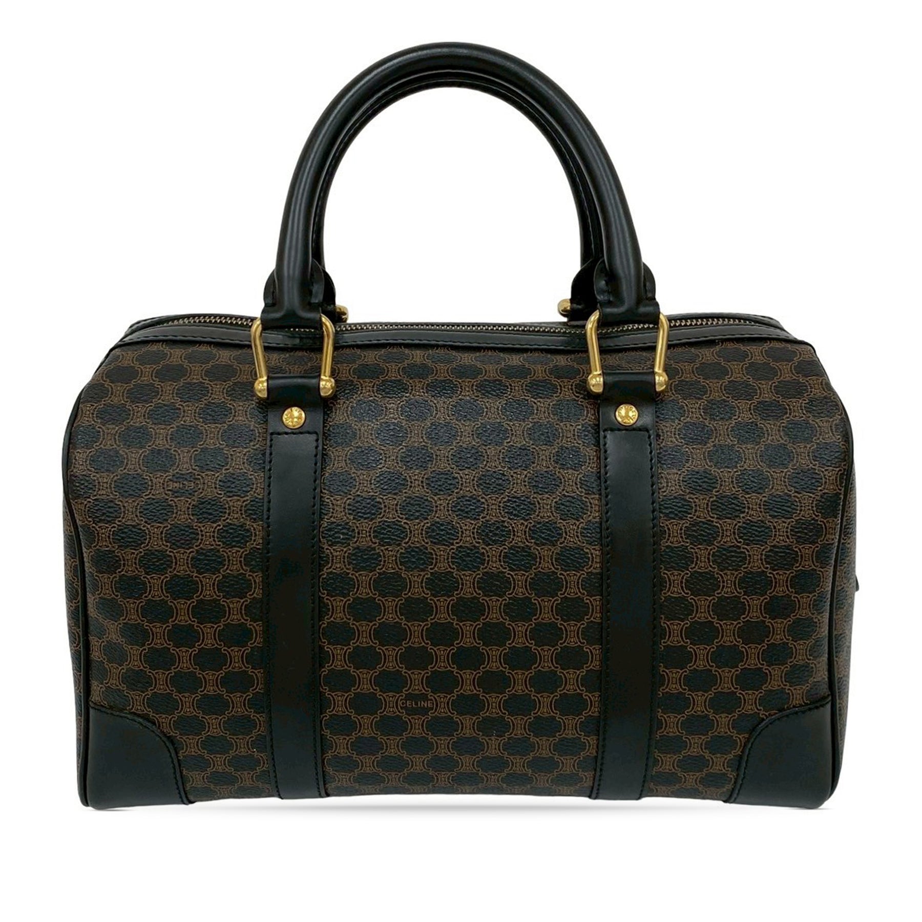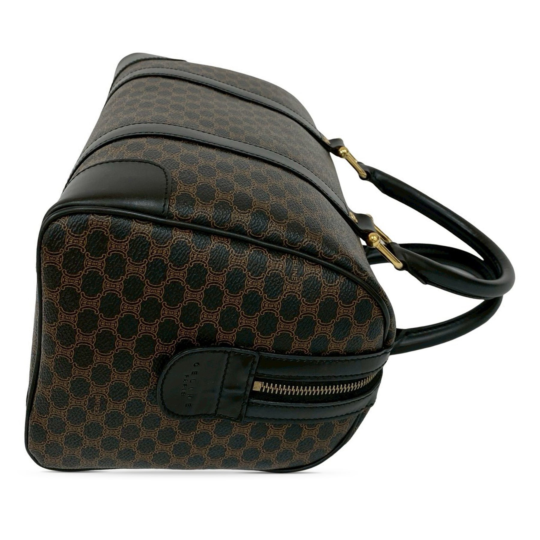 Ce sac Boston est confectionné en toile enduite avec des finitions en cuir, des anses roulées en cuir, une fermeture zippée sur le dessus et une poche intérieure plaquée. Il est en excellent état.