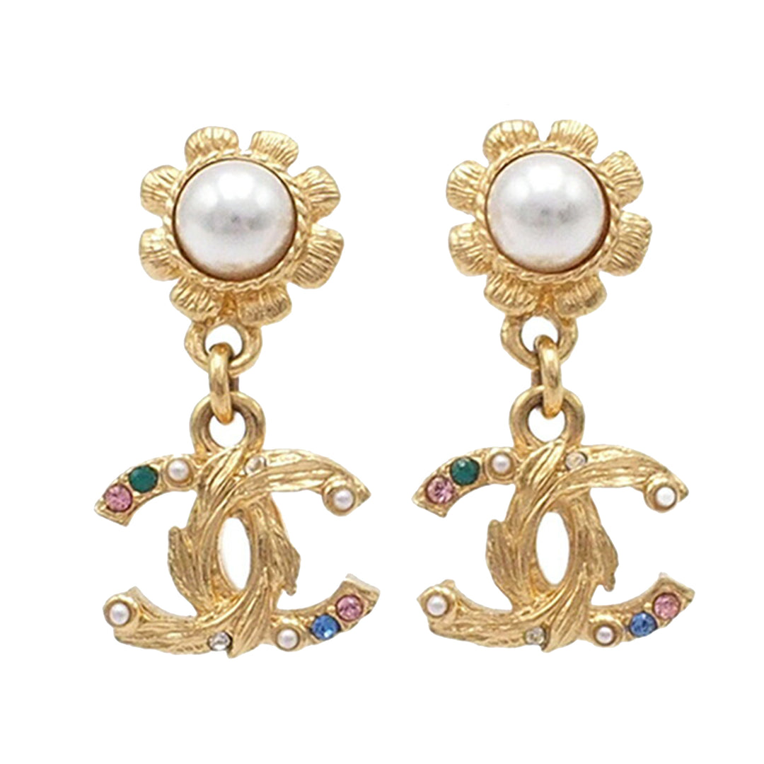 Chanel CC plaqué Perles fantaisie et Rhinestone Swing fermoir poussette Boucles d’oreilles