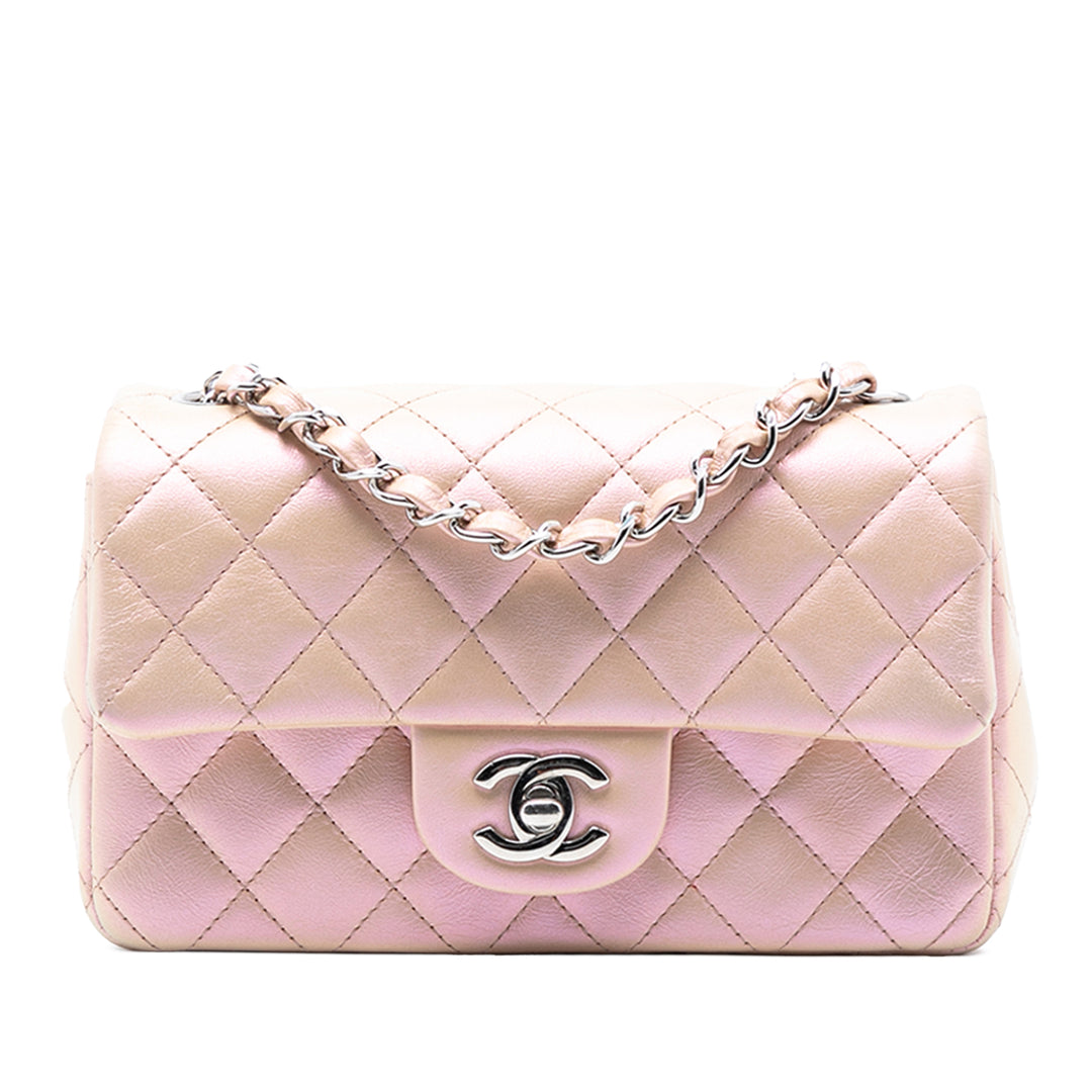 Chanel Mini Rectangular Classic Iridescent Cuir d’agneau Simple rabat