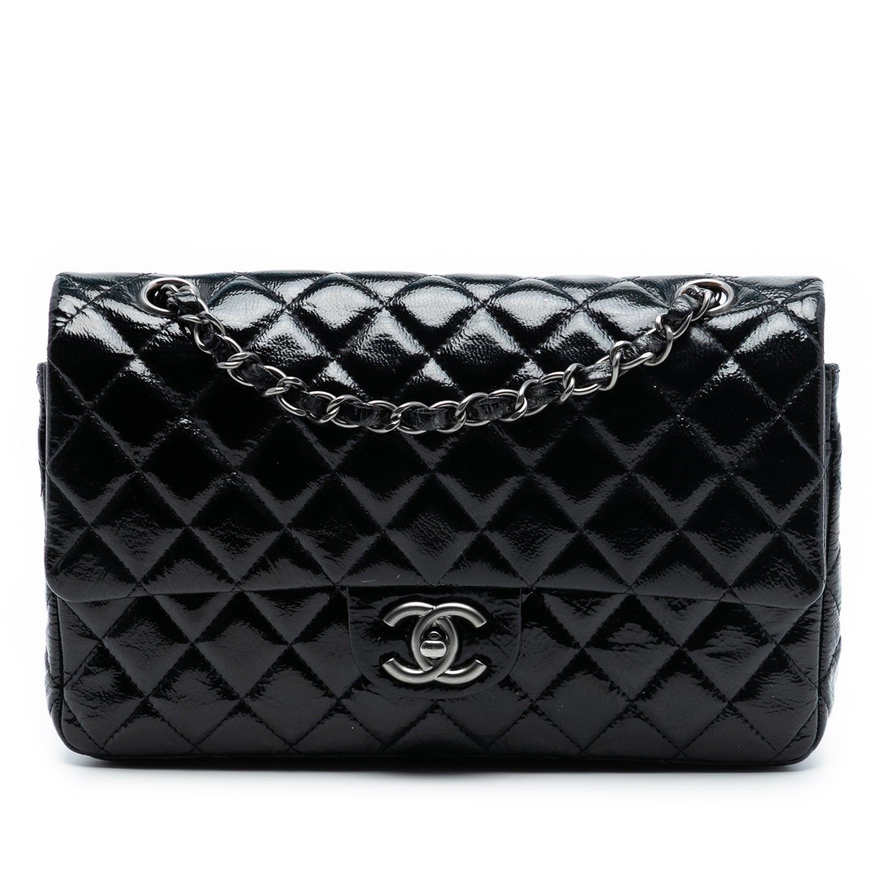 Chanel Medium Classic Distressed Cuir verni Double rabat