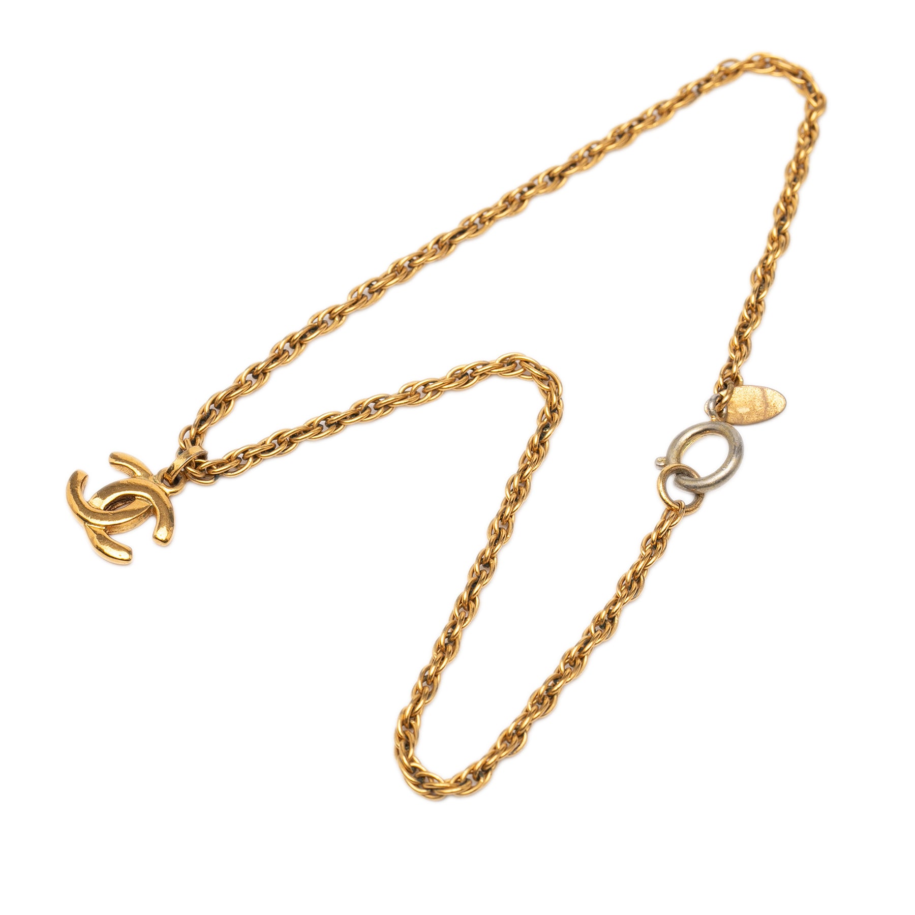 Ce collier est composé d'un pendentif et d'une chaîne en métal doré, et se ferme par un anneau à ressort. Il est en bon état.
