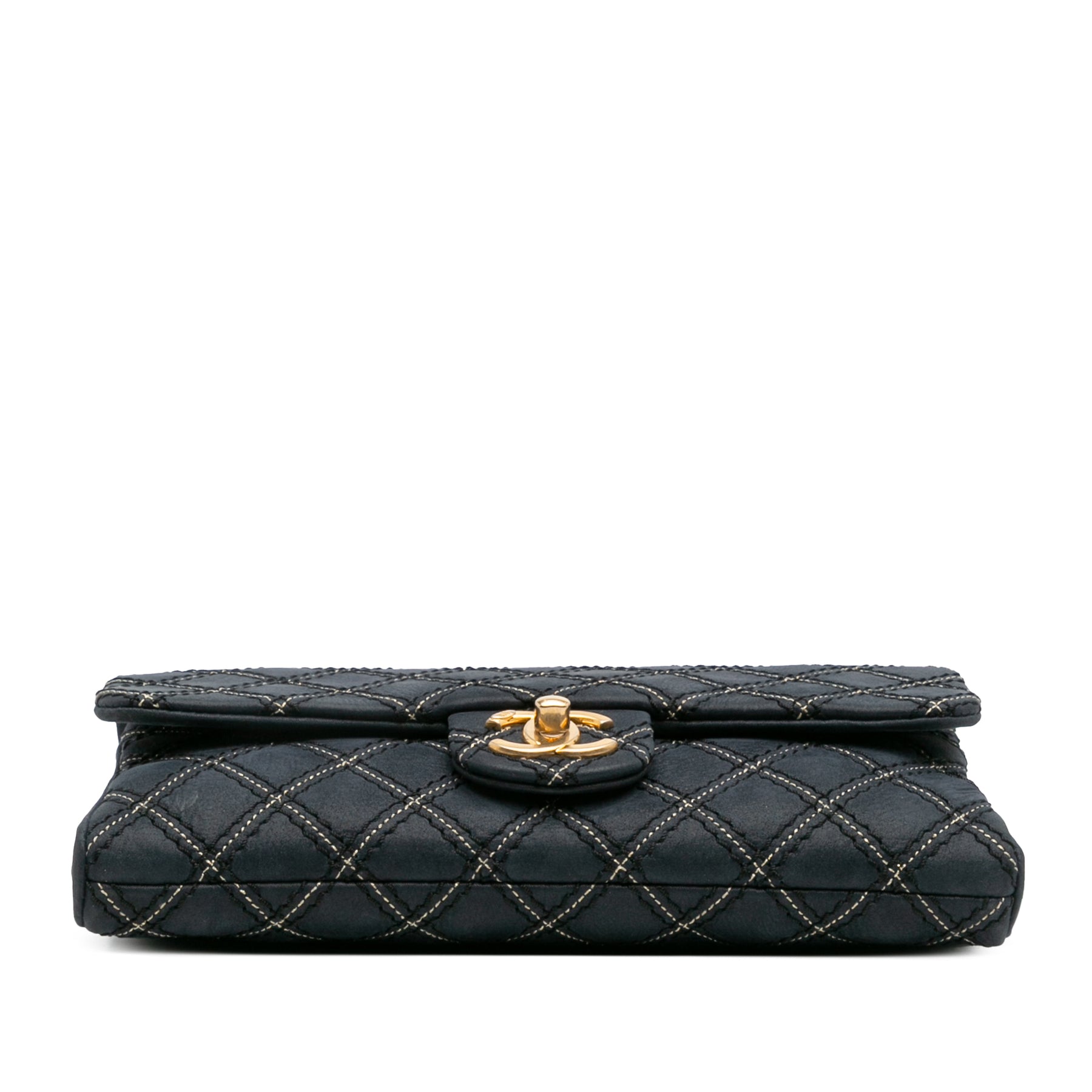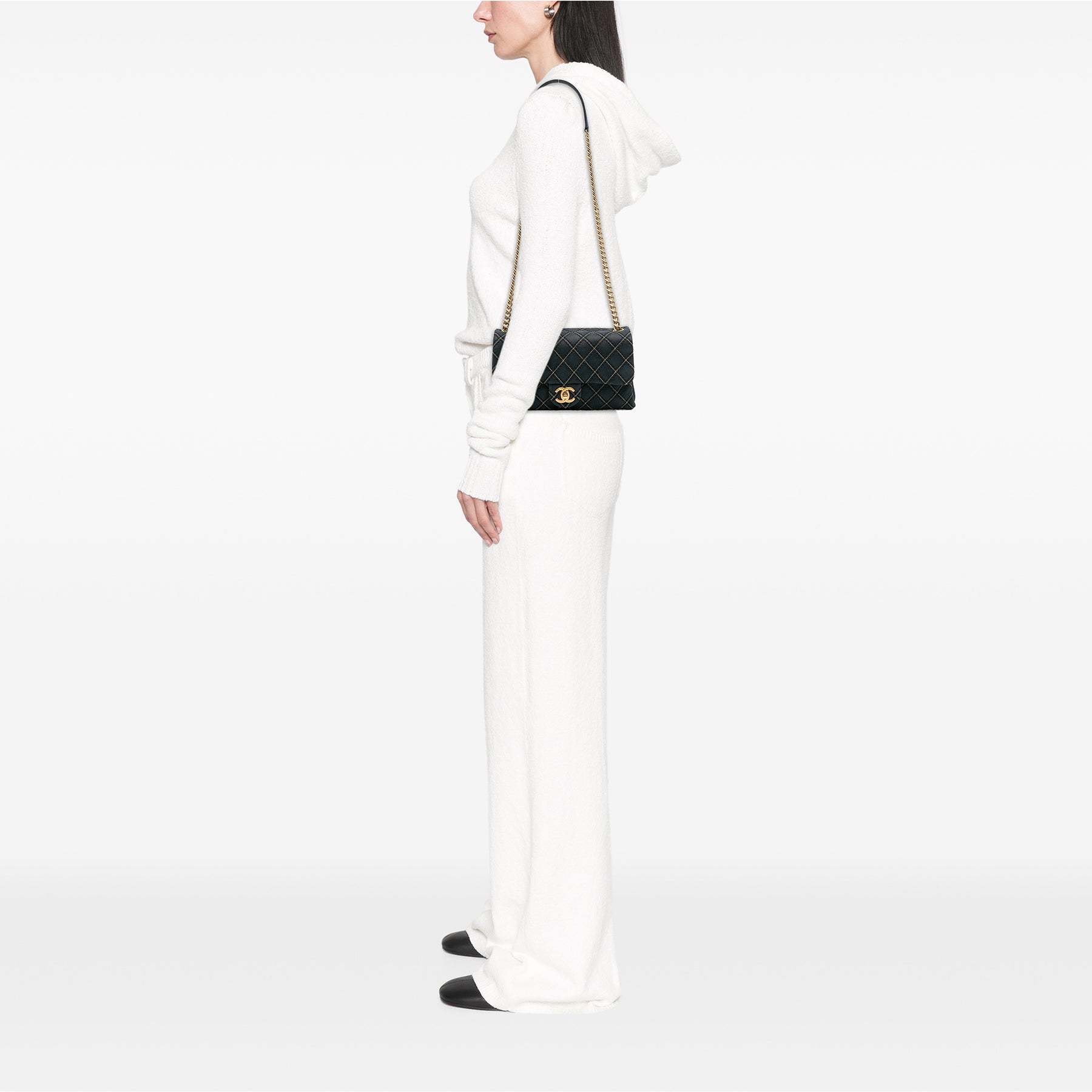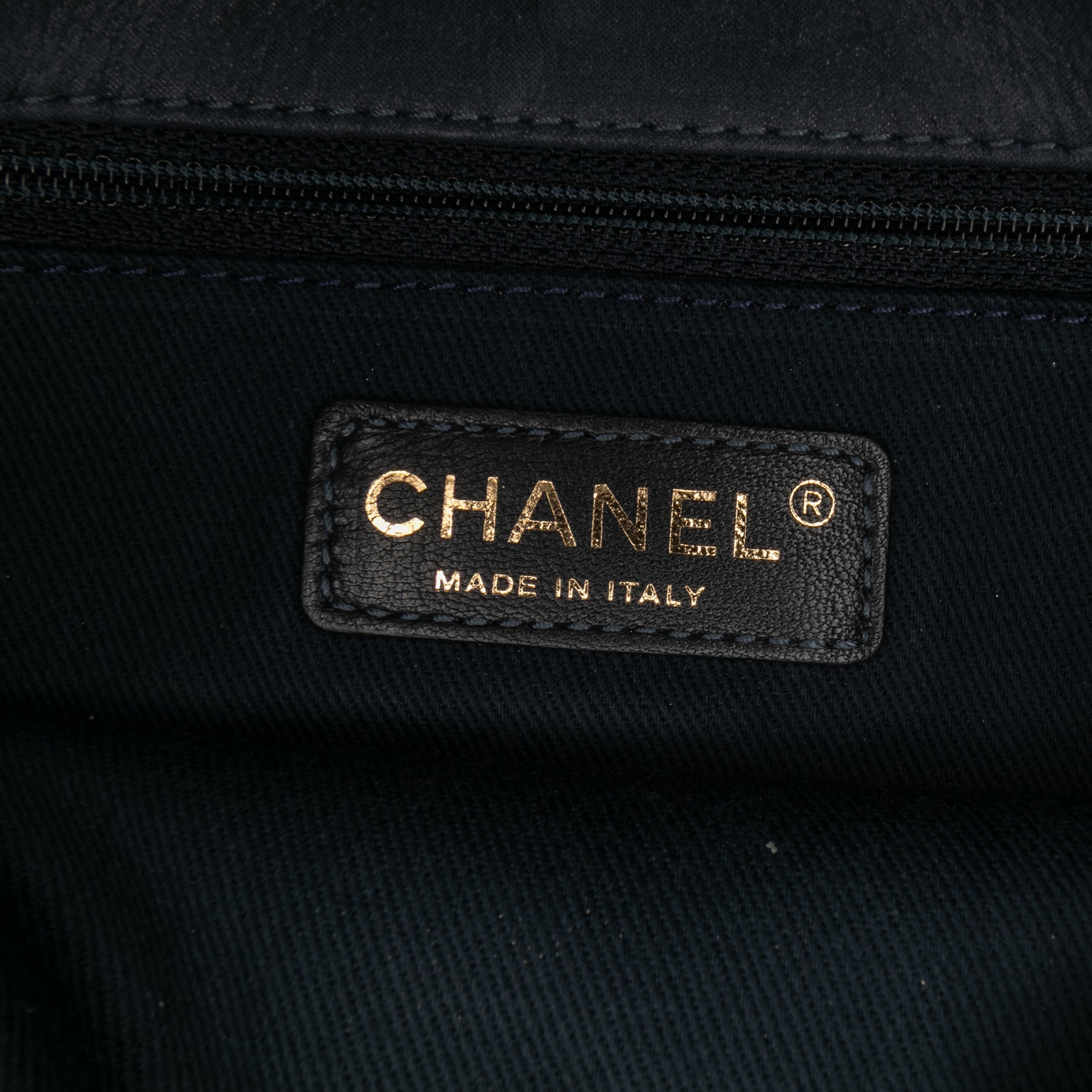 Ce sac bandoulière est confectionné en cuir matelassé à triple couture, possède une bandoulière chaîne gourmette avec protection en cuir, un rabat avec fermoir CC, des compartiments intérieurs ouverts et zippés, ainsi qu'une poche intérieure zippée. Il est en bon état.