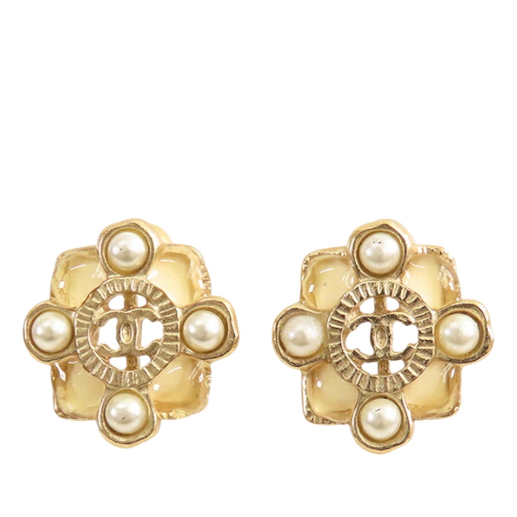 Chanel CC Doré Plated Resin and Faux Pearl Push Back Boucle d’oreilles Doré – GABY PARIS Authentique