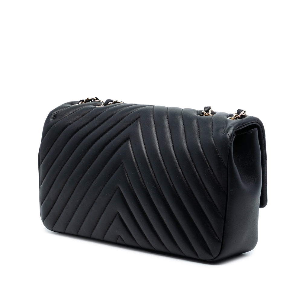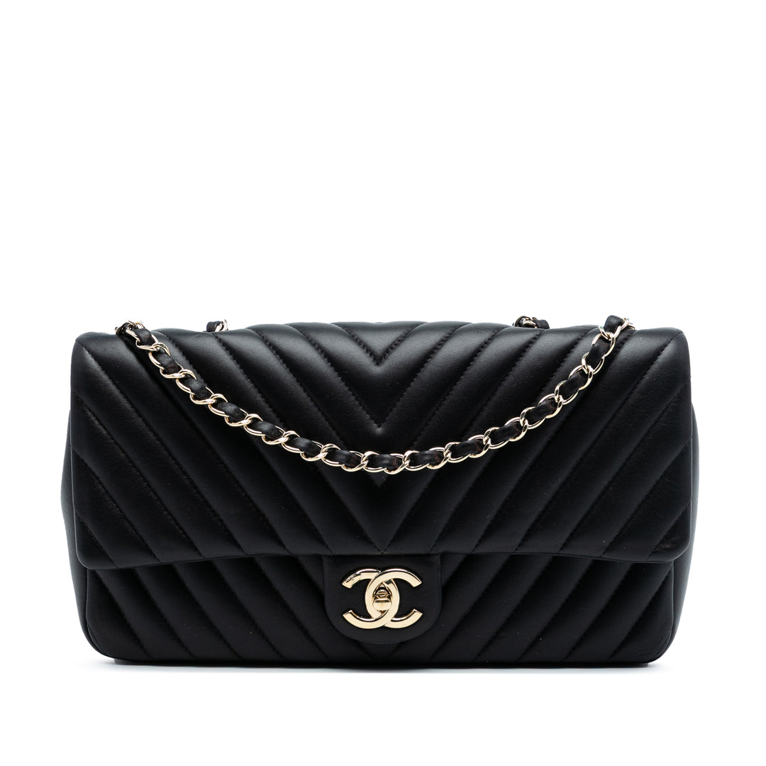 Chanel CC Chevron Matelassé Cuir d’agneau Simple rabat
