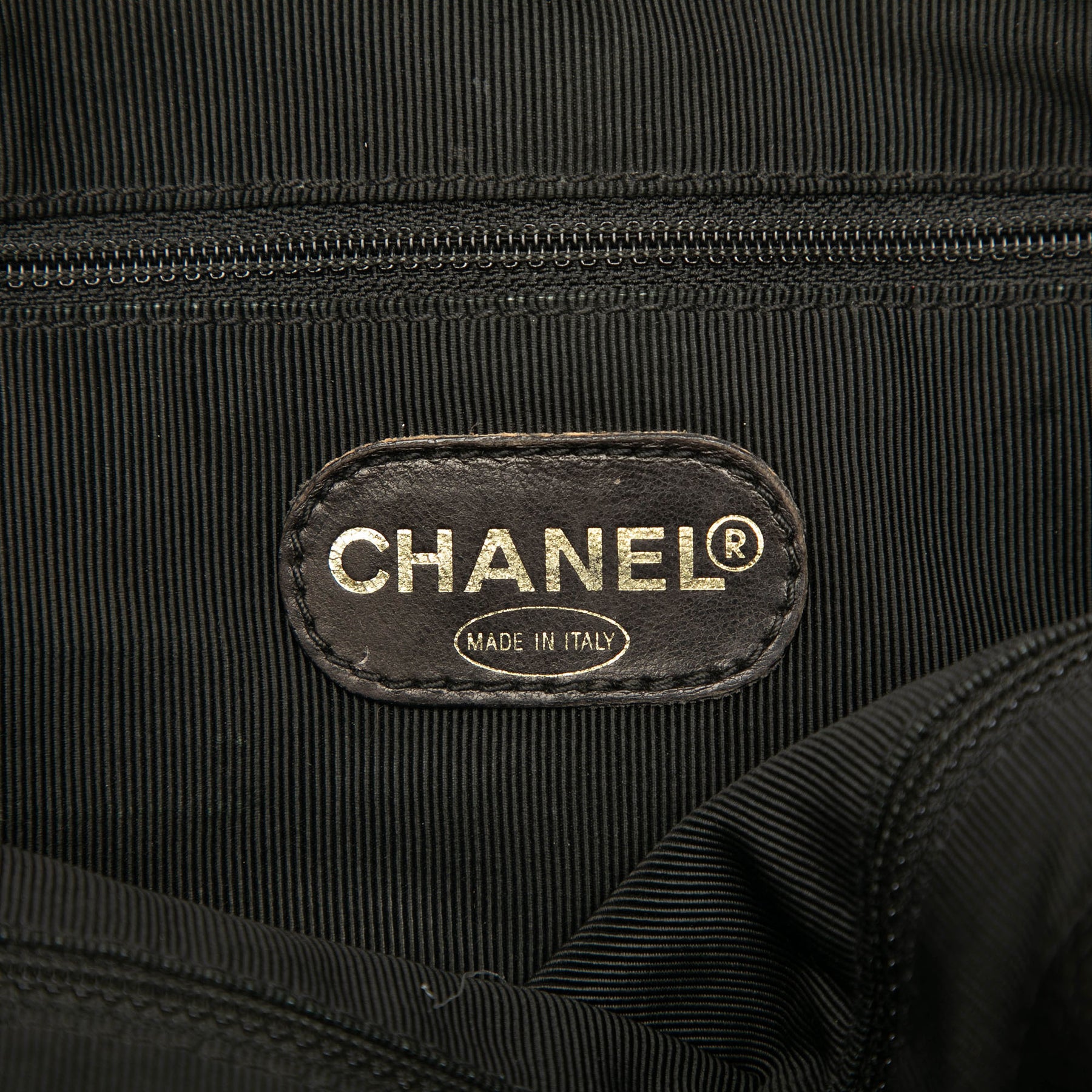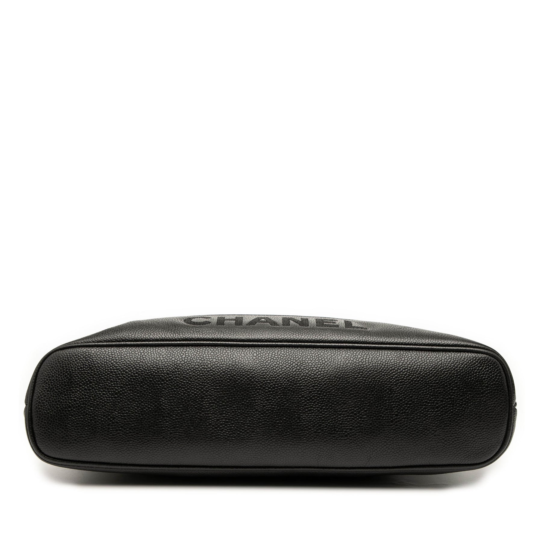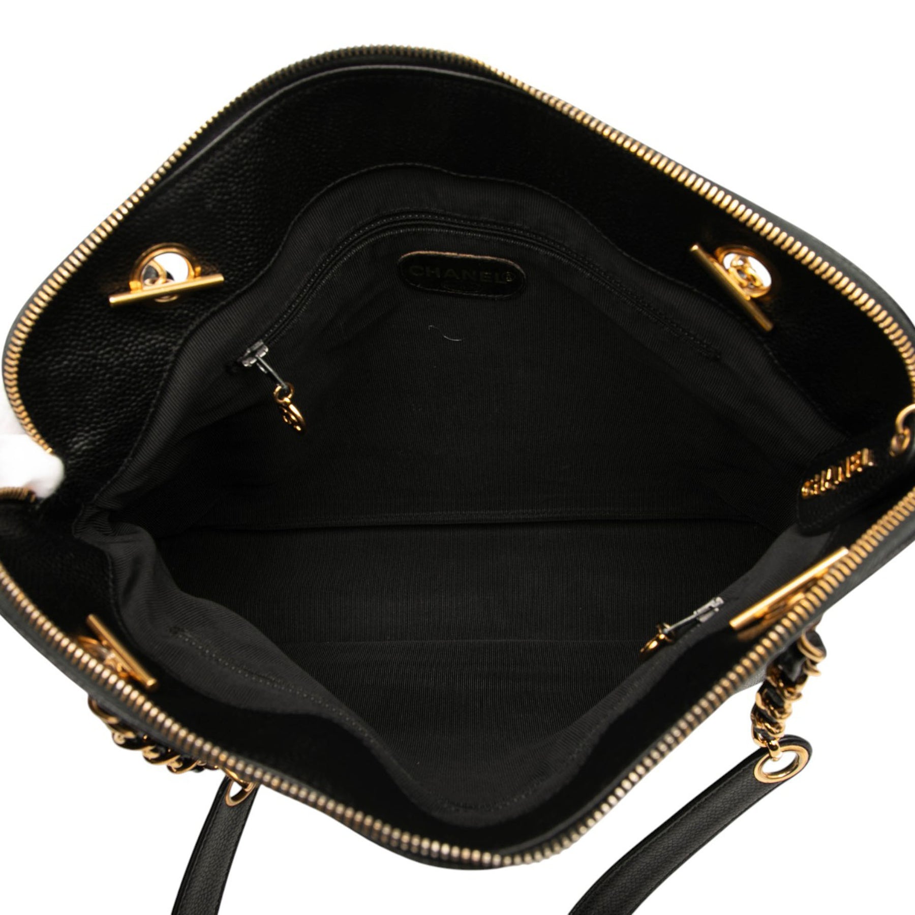 Ce sac bandoulière est confectionné en cuir caviar et possède une bandoulière en chaîne et cuir tressés, une fermeture zippée sur le dessus, une poche plaquée extérieure et des poches intérieures zippées. Il est en bon état.
