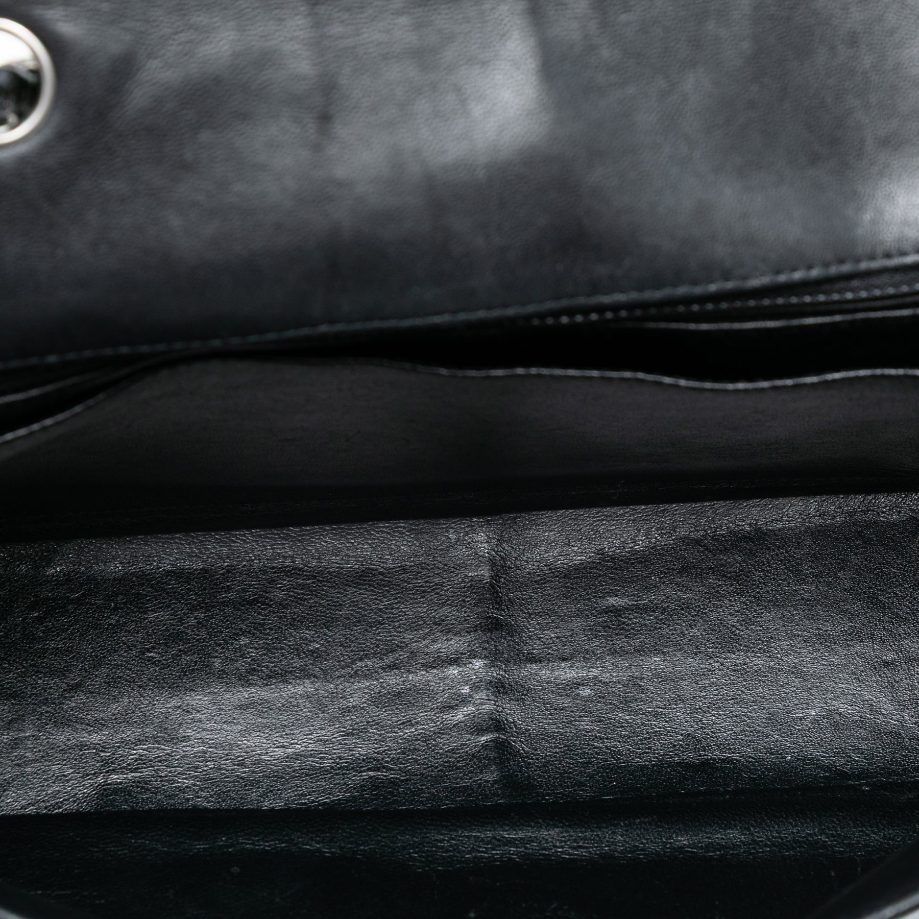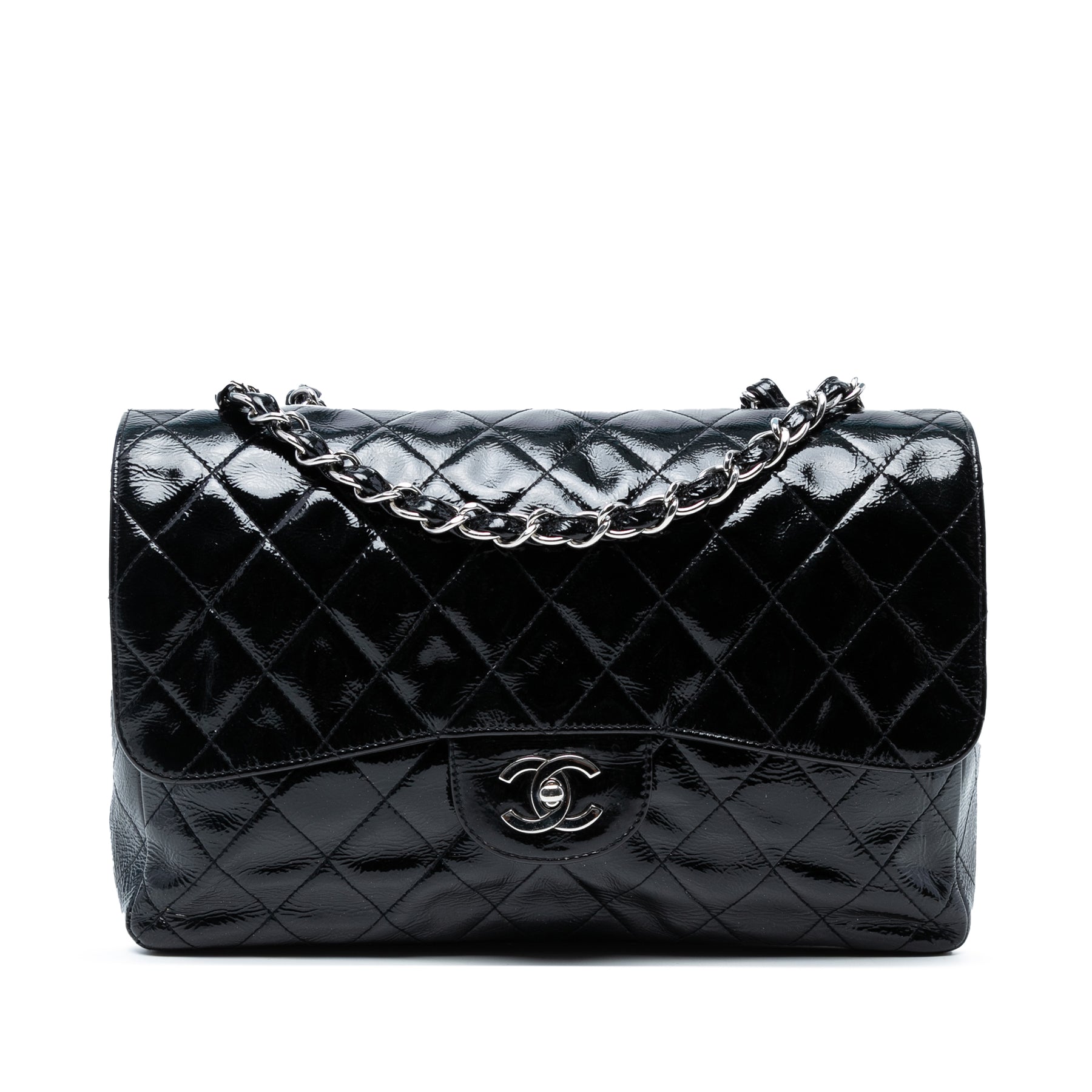 Chanel Jumbo Classic Crinkled Cuir verni Simple rabat Bleu