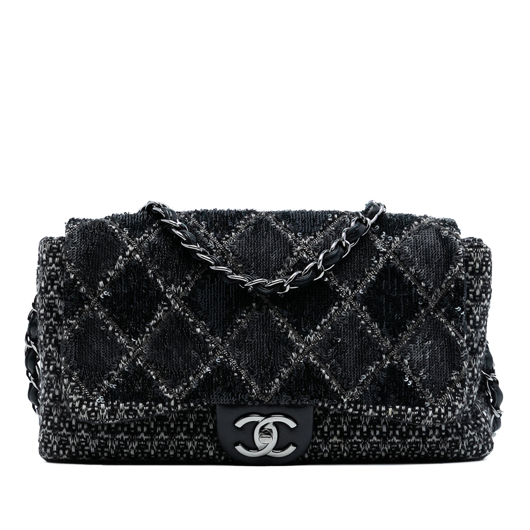 Chanel Large Tweed et Sequins Icons 3 Accordion à rabat