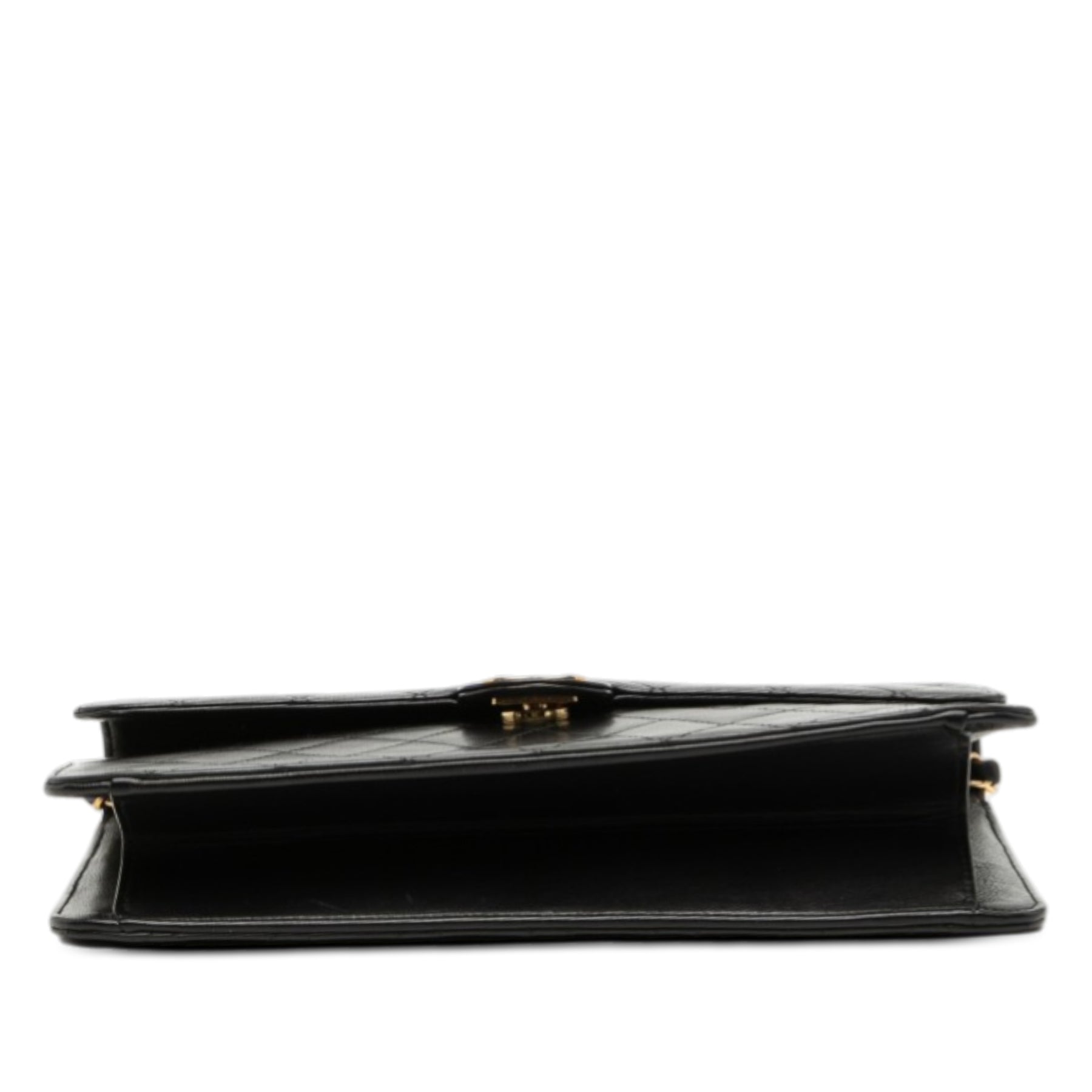 Ce sac bandoulière est confectionné en cuir d'agneau matelassé et possède une bandoulière en chaîne tressée, un rabat avant avec fermoir CC et une poche intérieure zippée ainsi que des poches plaquées. Il est en excellent état.
