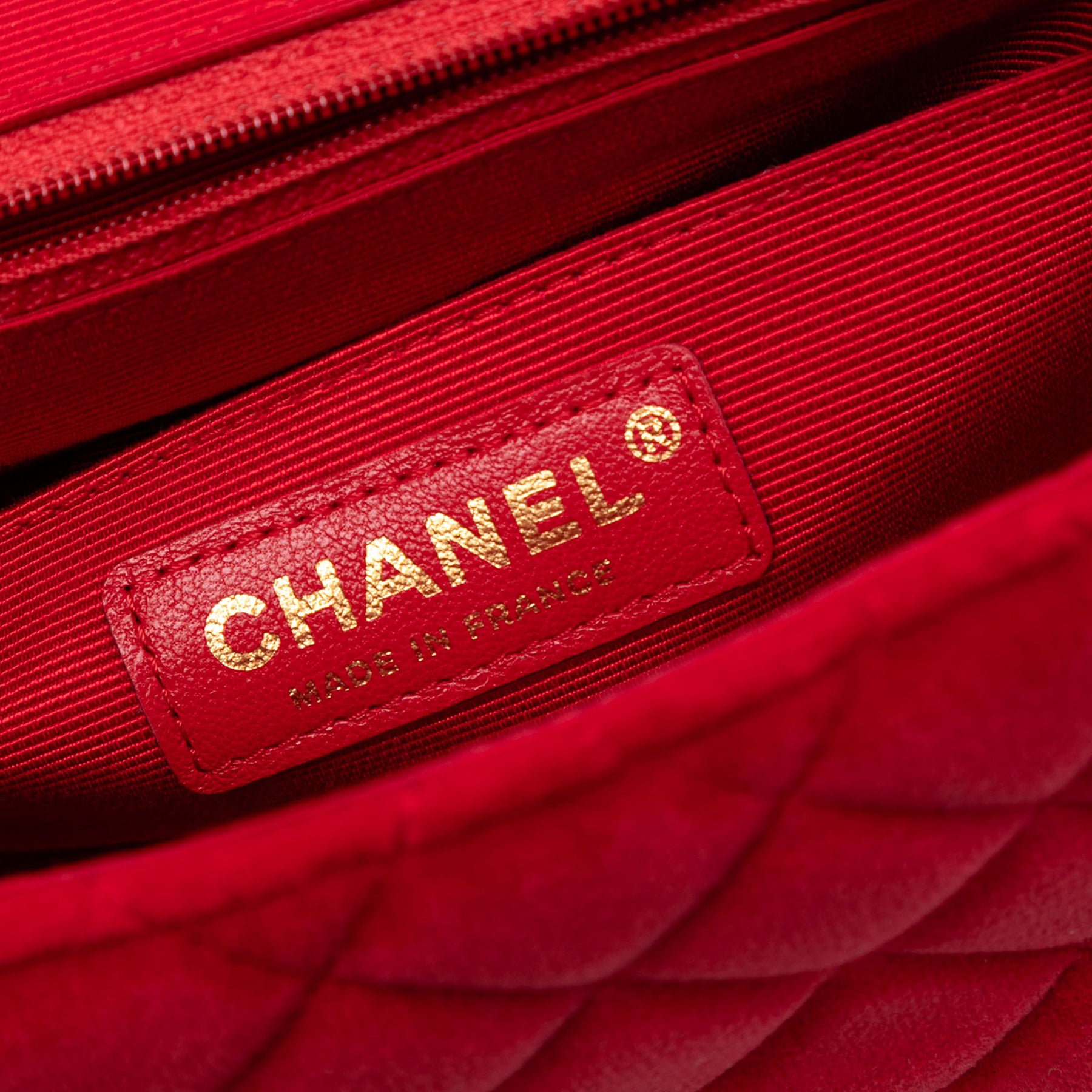 Ce sac bandoulière est en velours matelassé, avec une bandoulière en chaîne et cuir tressé, un rabat avant à fermoir CC, une poche plaquée extérieure au dos et des poches intérieures zippées et plaquées. Il est en excellent état.