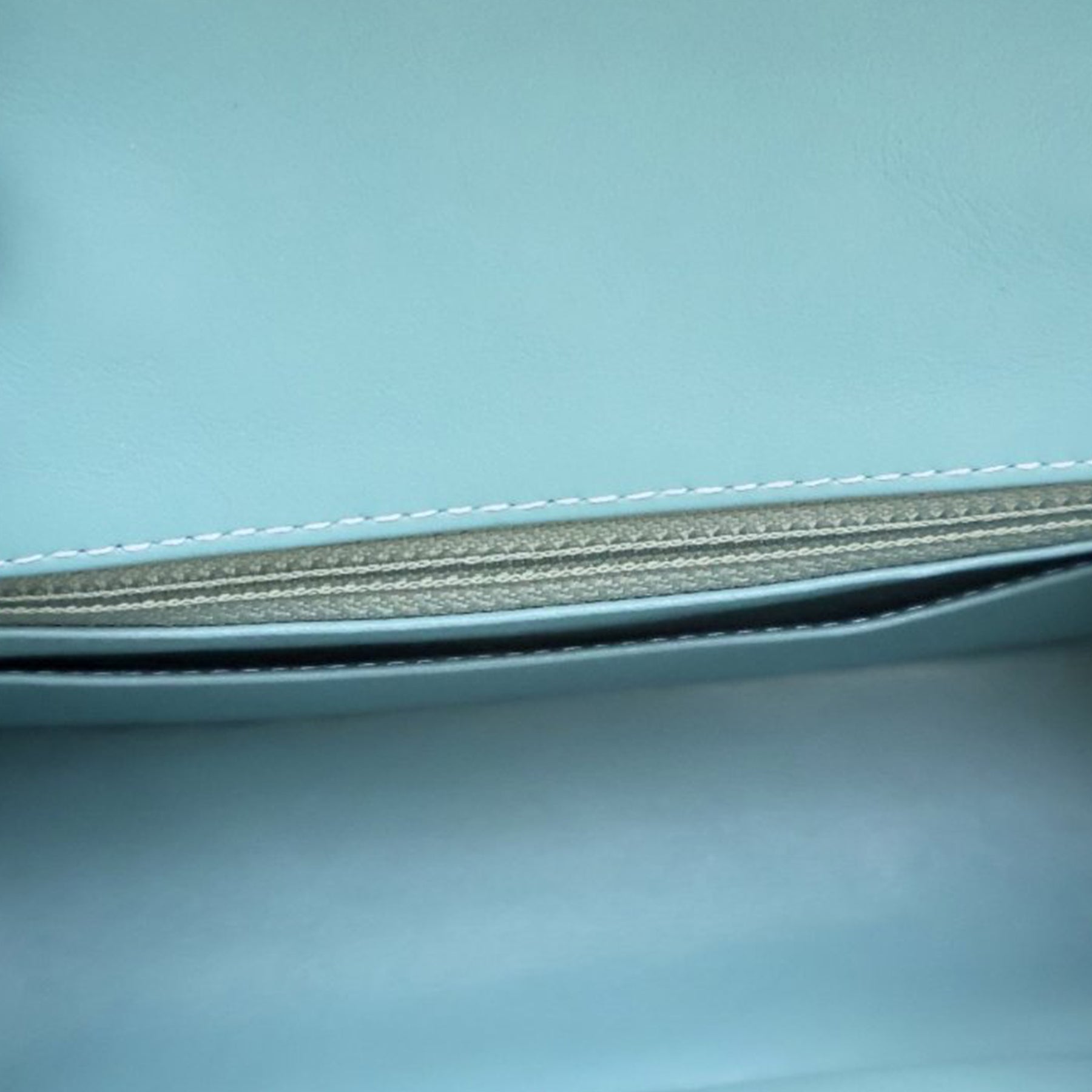 Ce sac à rabat est en velours, possède des anses en chaîne, un rabat avant avec fermeture à tourniquet, une poche plaquée extérieure au dos et des poches intérieures zippées et plaquées. Il est en excellent état.