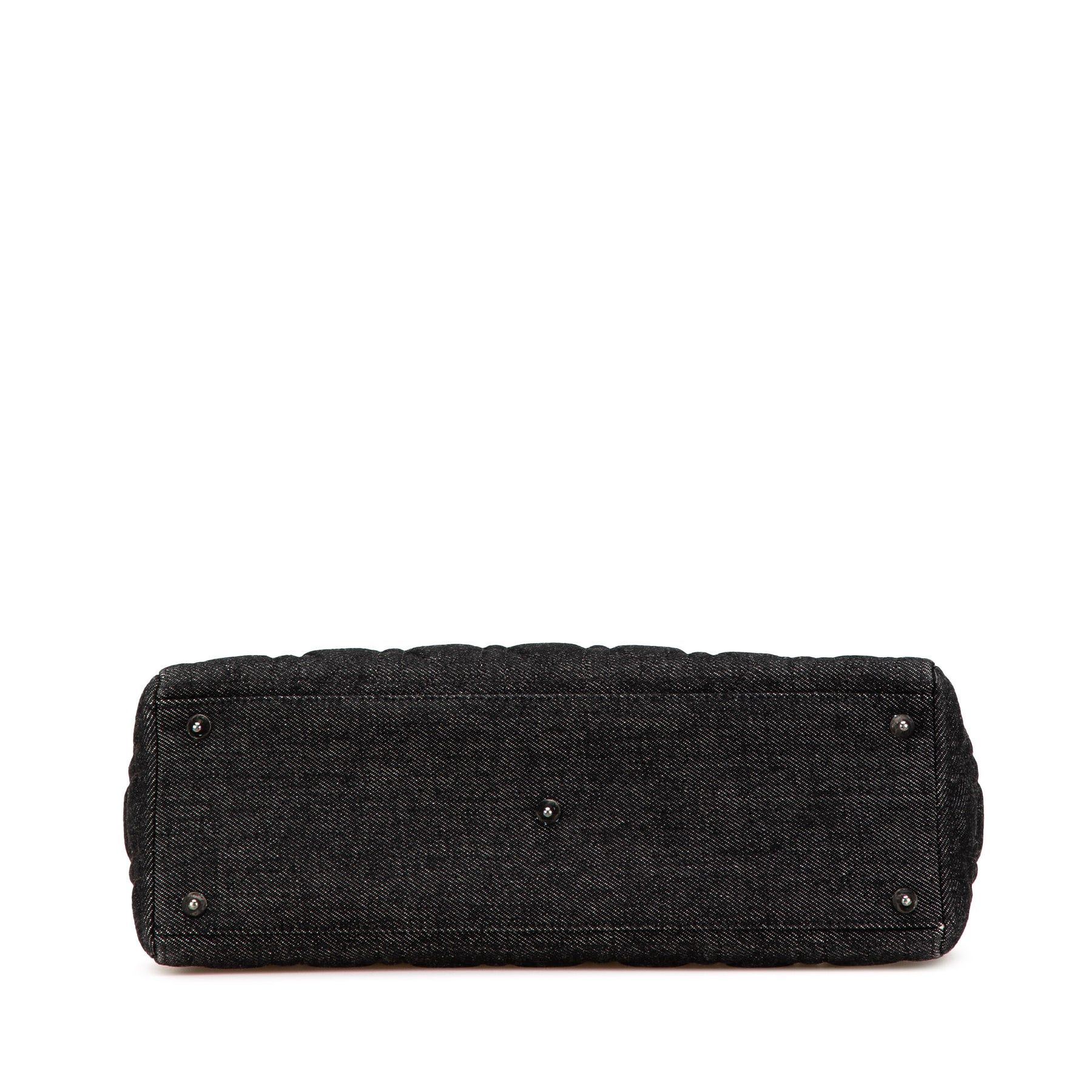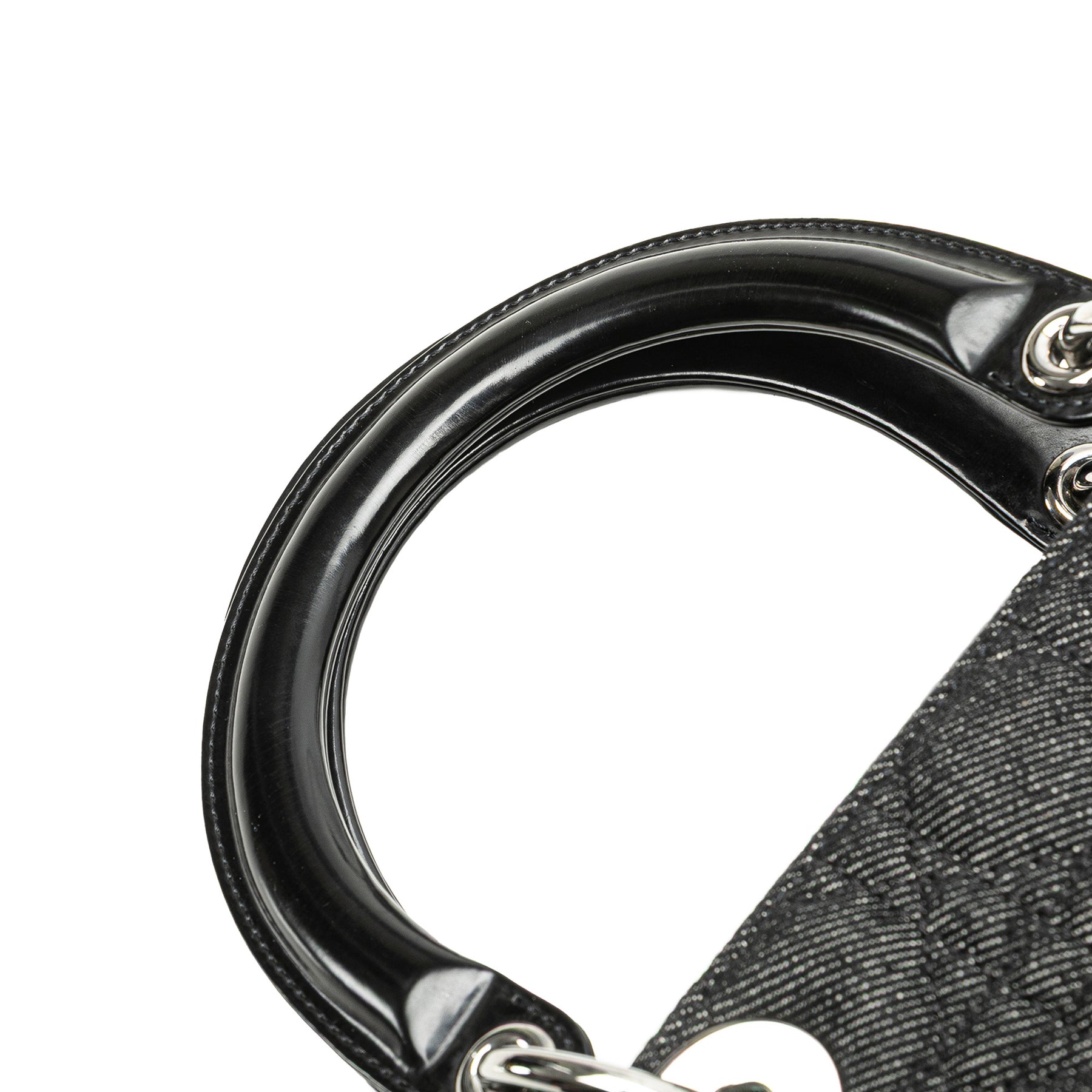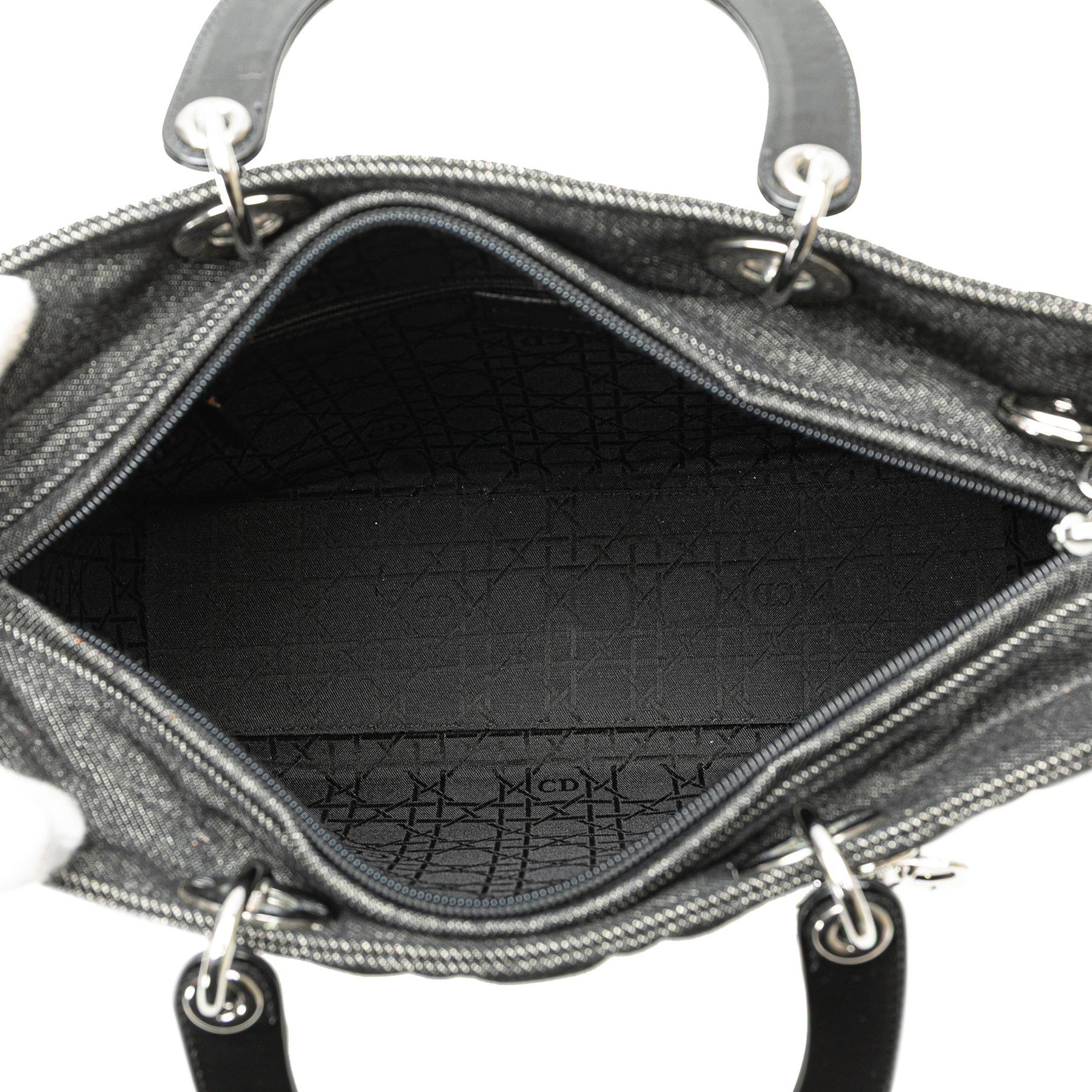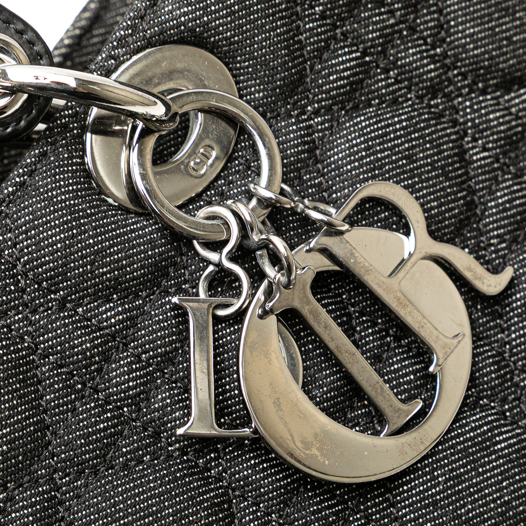 Le sac Lady Dior est confectionné en denim cannage, possède des anses structurées en cuir, une bandoulière amovible, une fermeture zippée sur le dessus et une poche intérieure zippée. Il est en bon état.