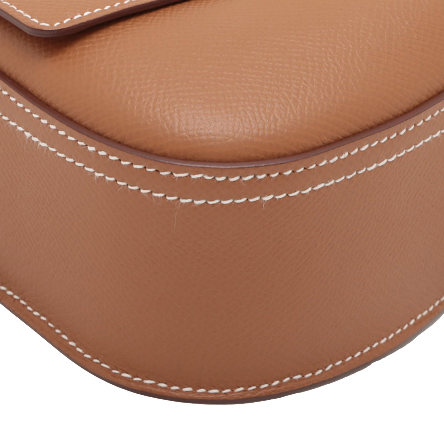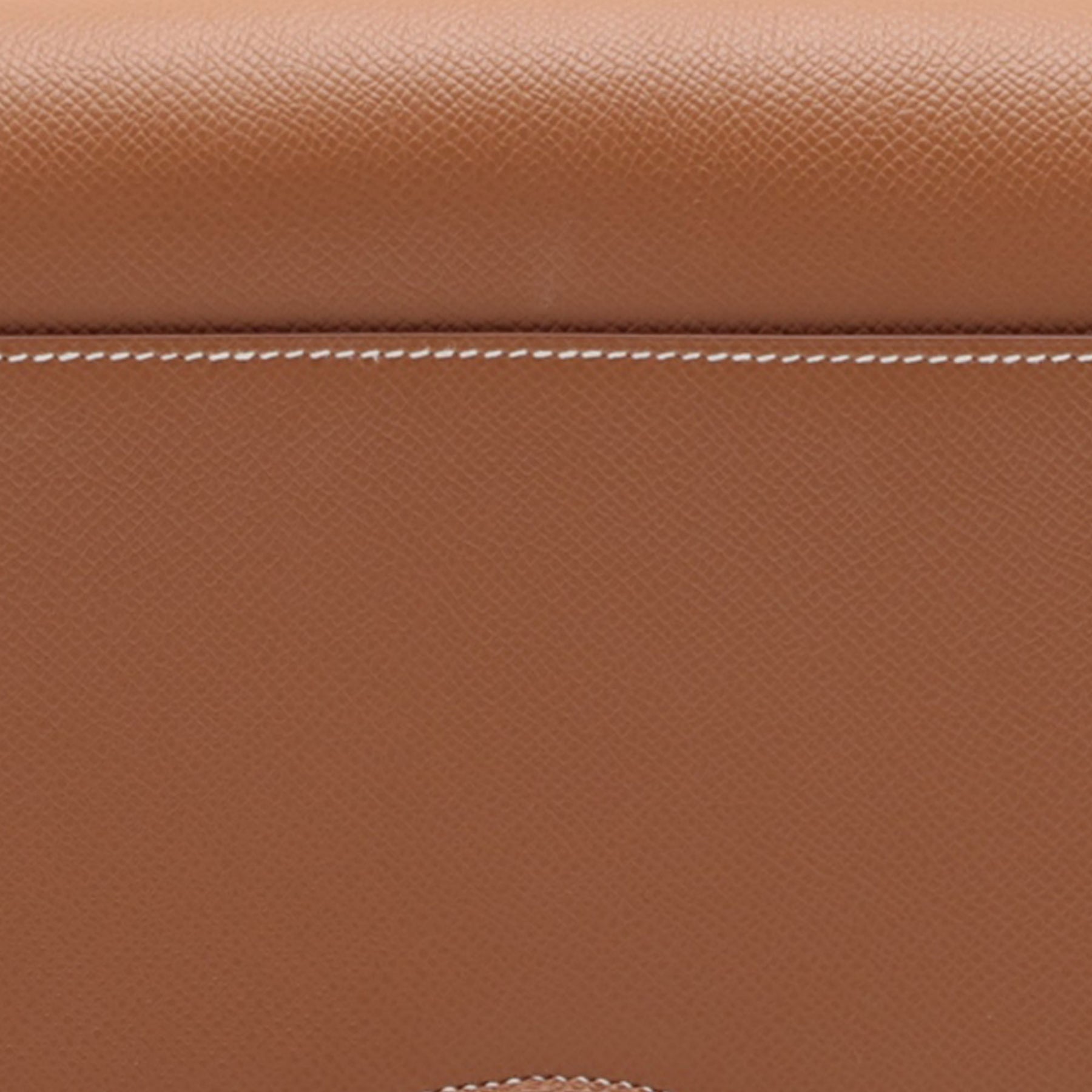 Ce sac Della Cavalleria est confectionné en cuir Epsom doré et possède une bandoulière plate ajustable, un rabat avant à fermeture pression, une poche plaquée extérieure au dos et une poche plaquée intérieure. Il est en excellent état.
