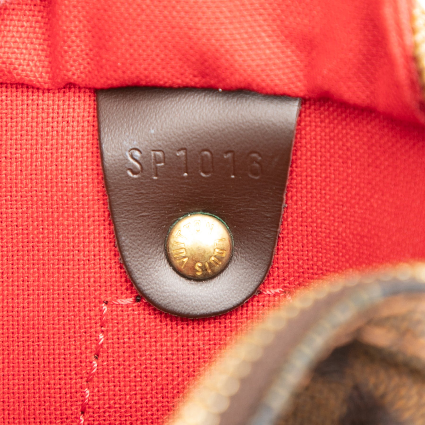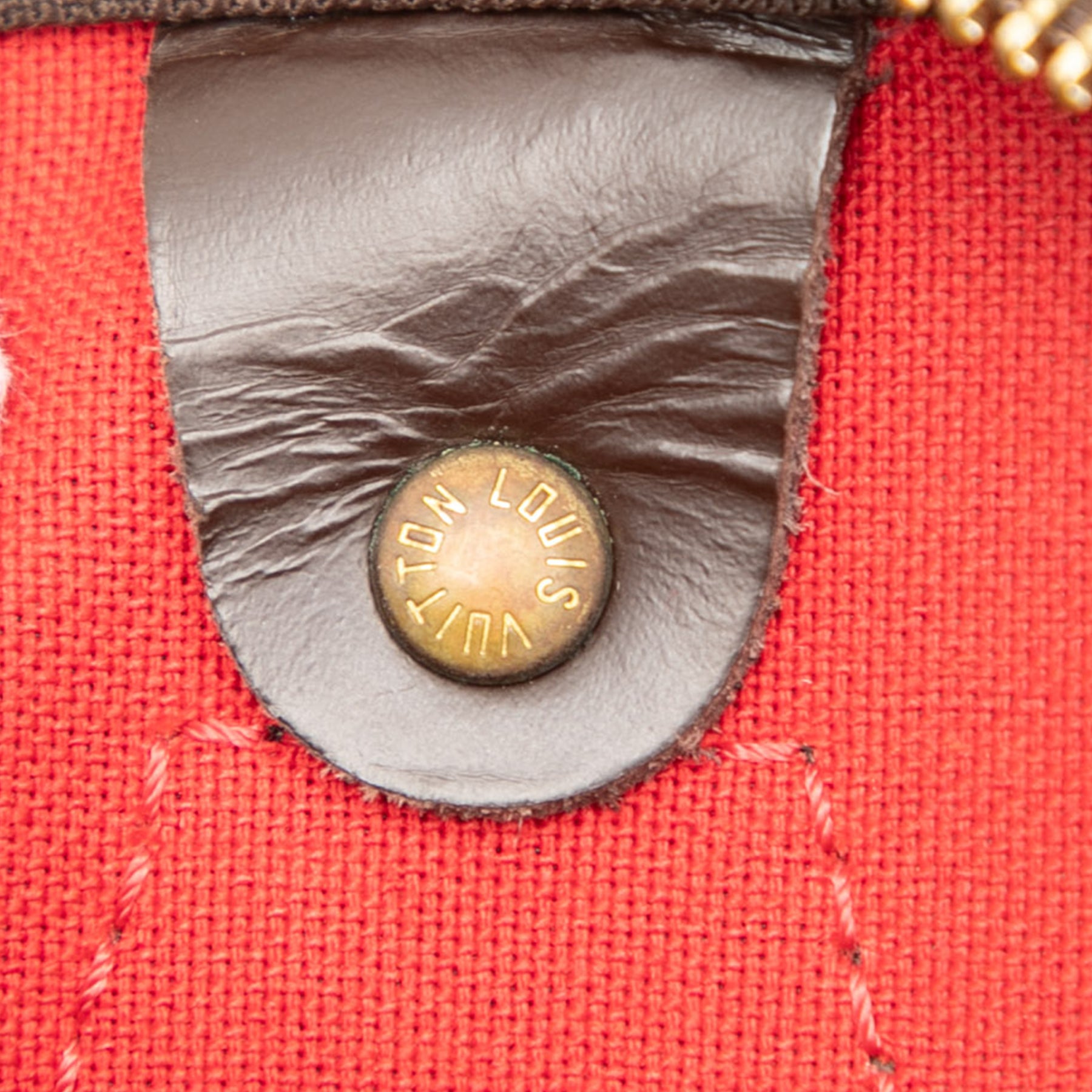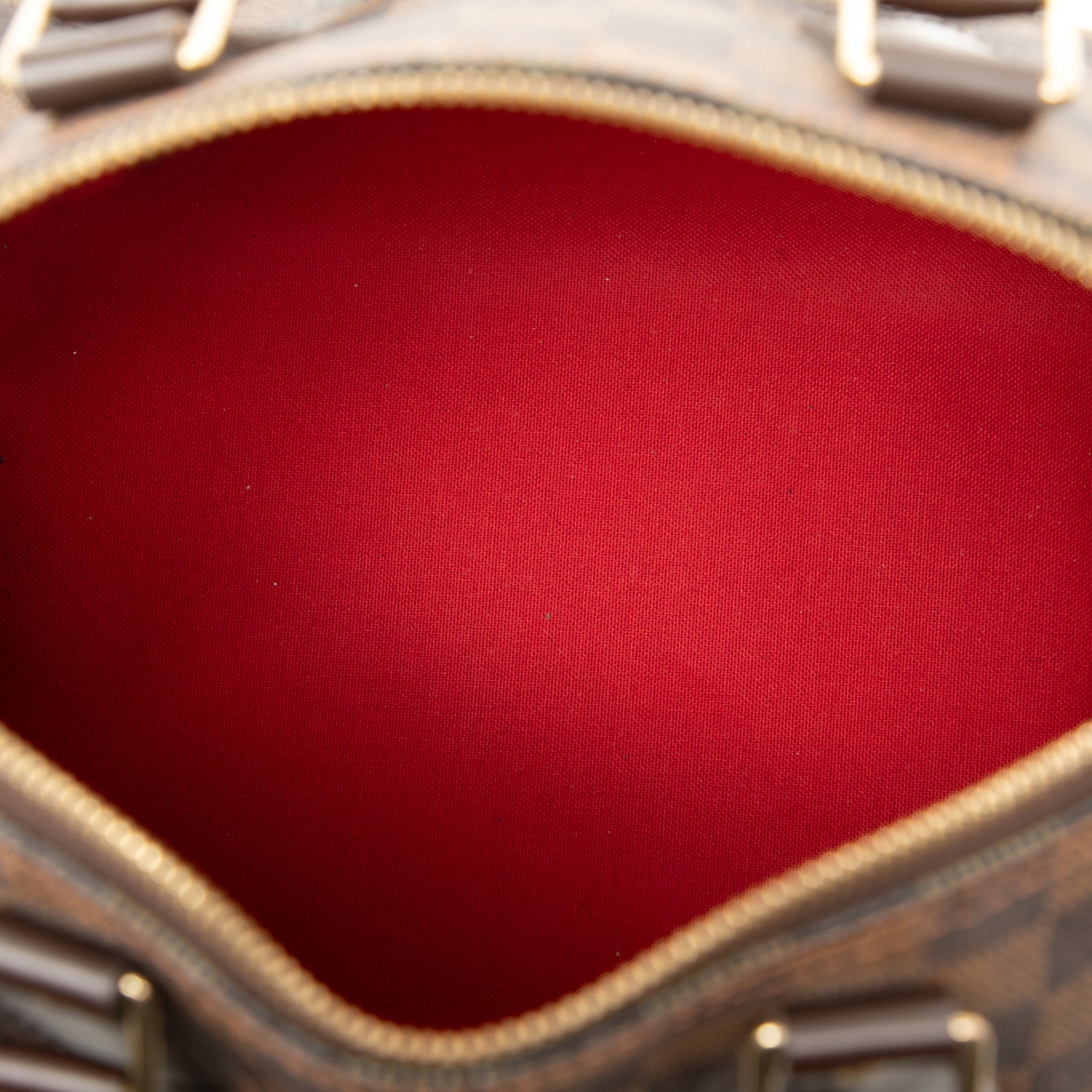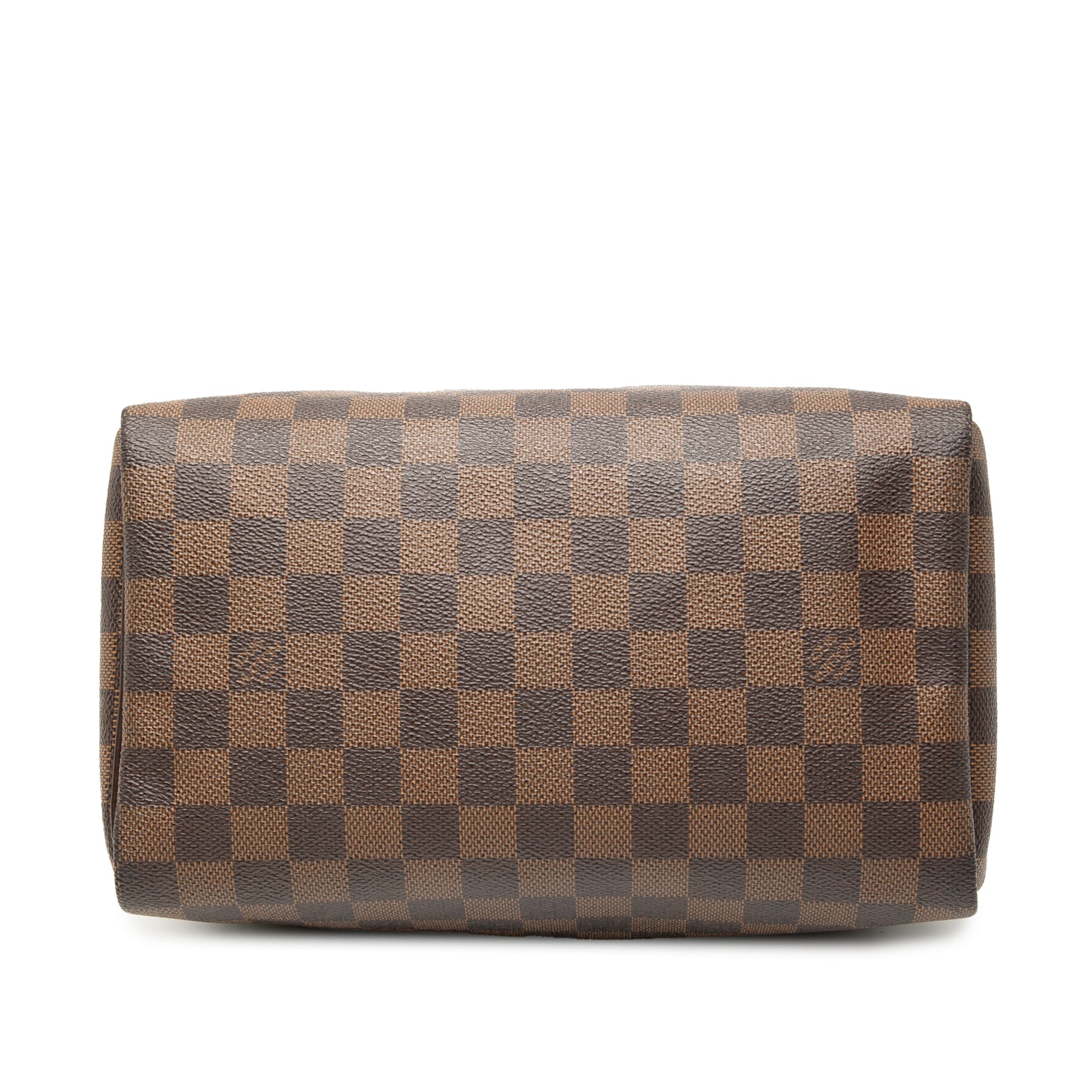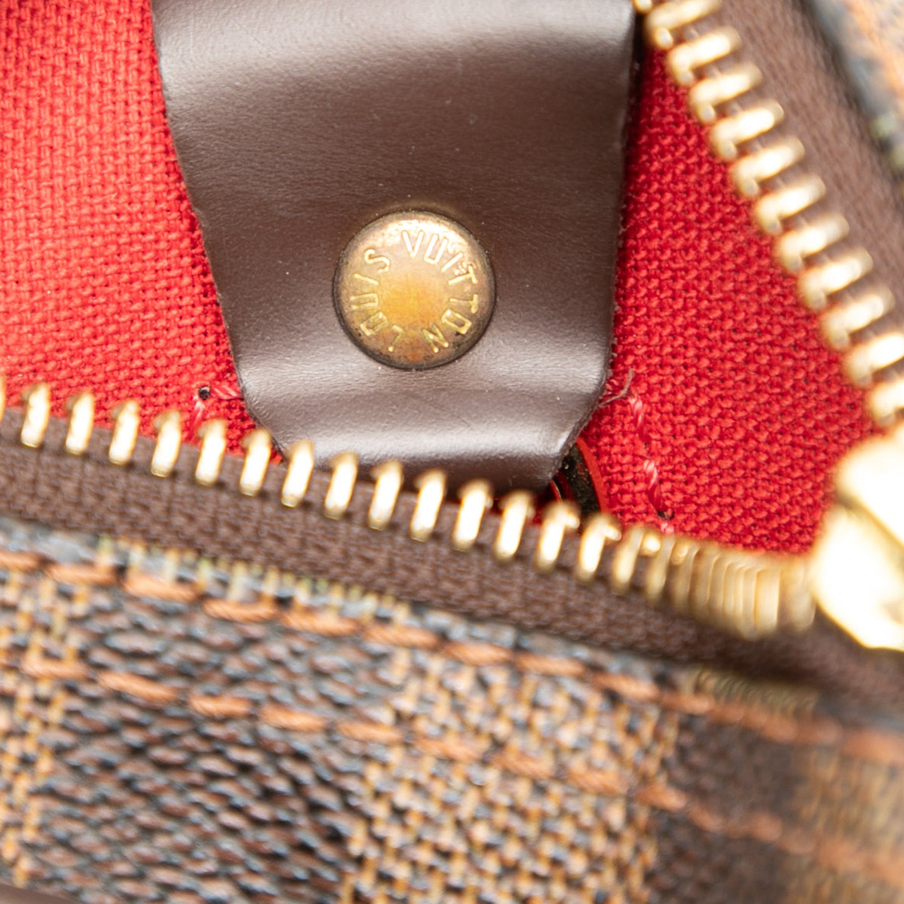 Ce sac Speedy 25 est doté d'une toile Damier Ébène, de poignées roulées en cuir et d'une fermeture zippée sur le dessus. Il est en bon état.