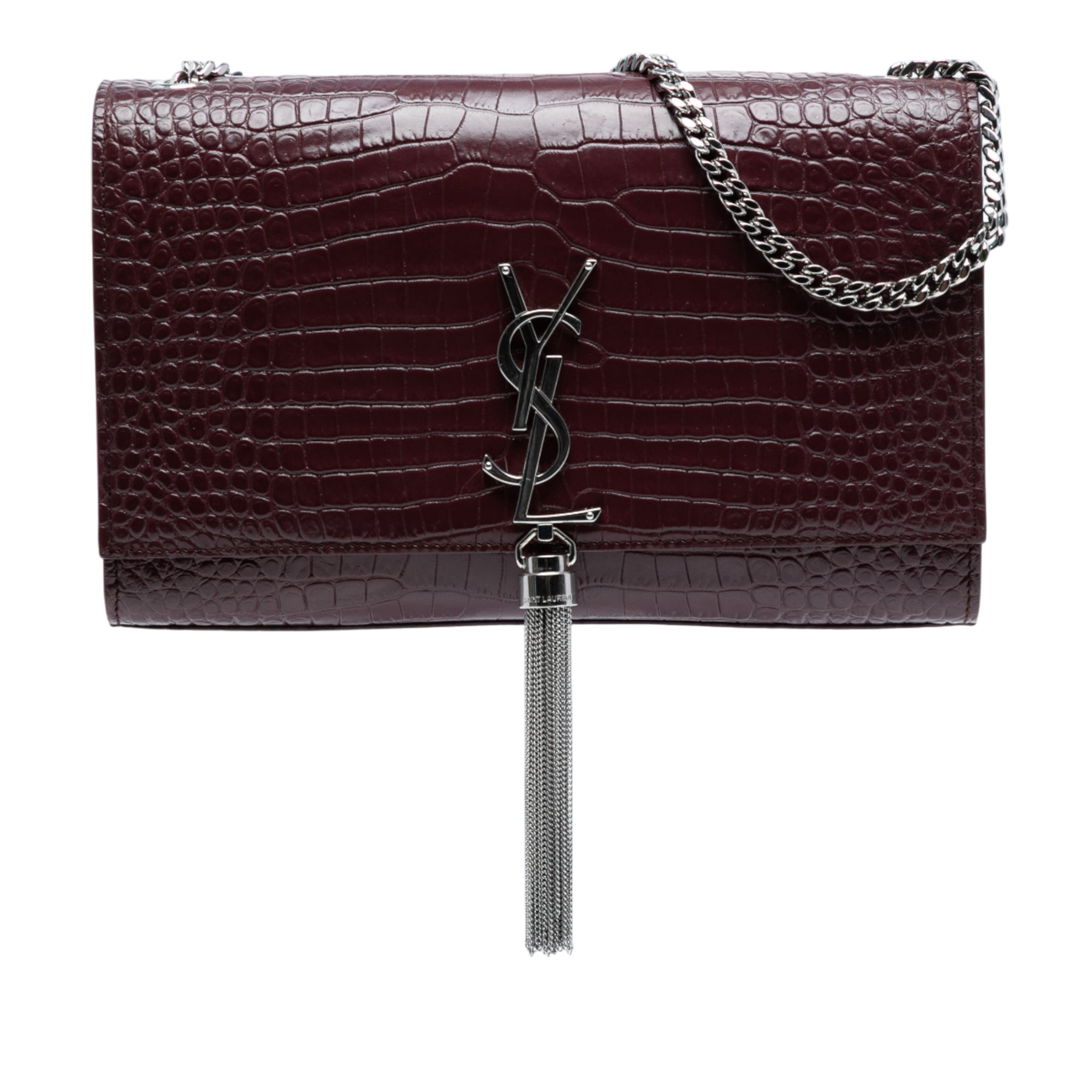 Saint Laurent Medium Croc embossé Cuir Monogram Kate Tassel Sac porté croisé