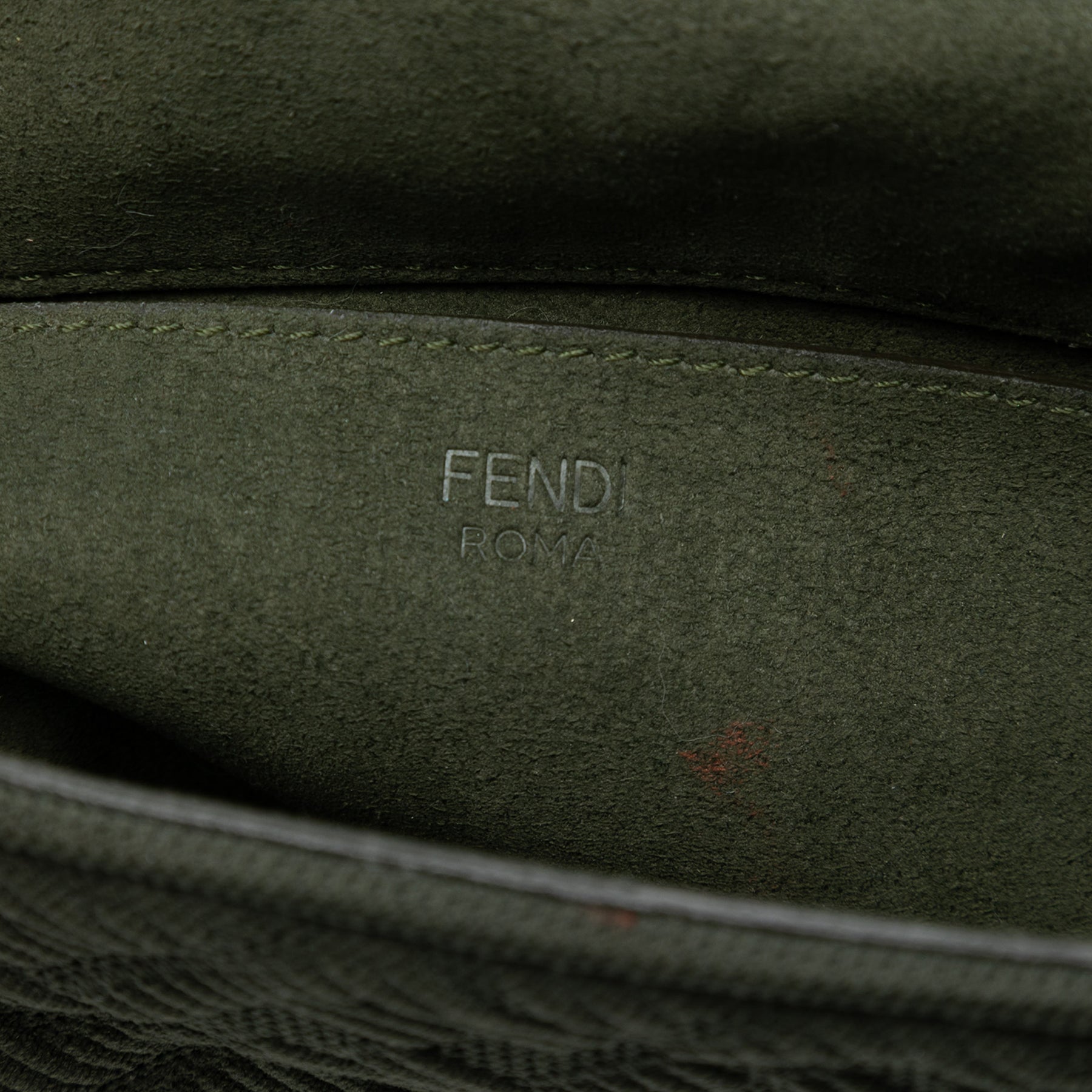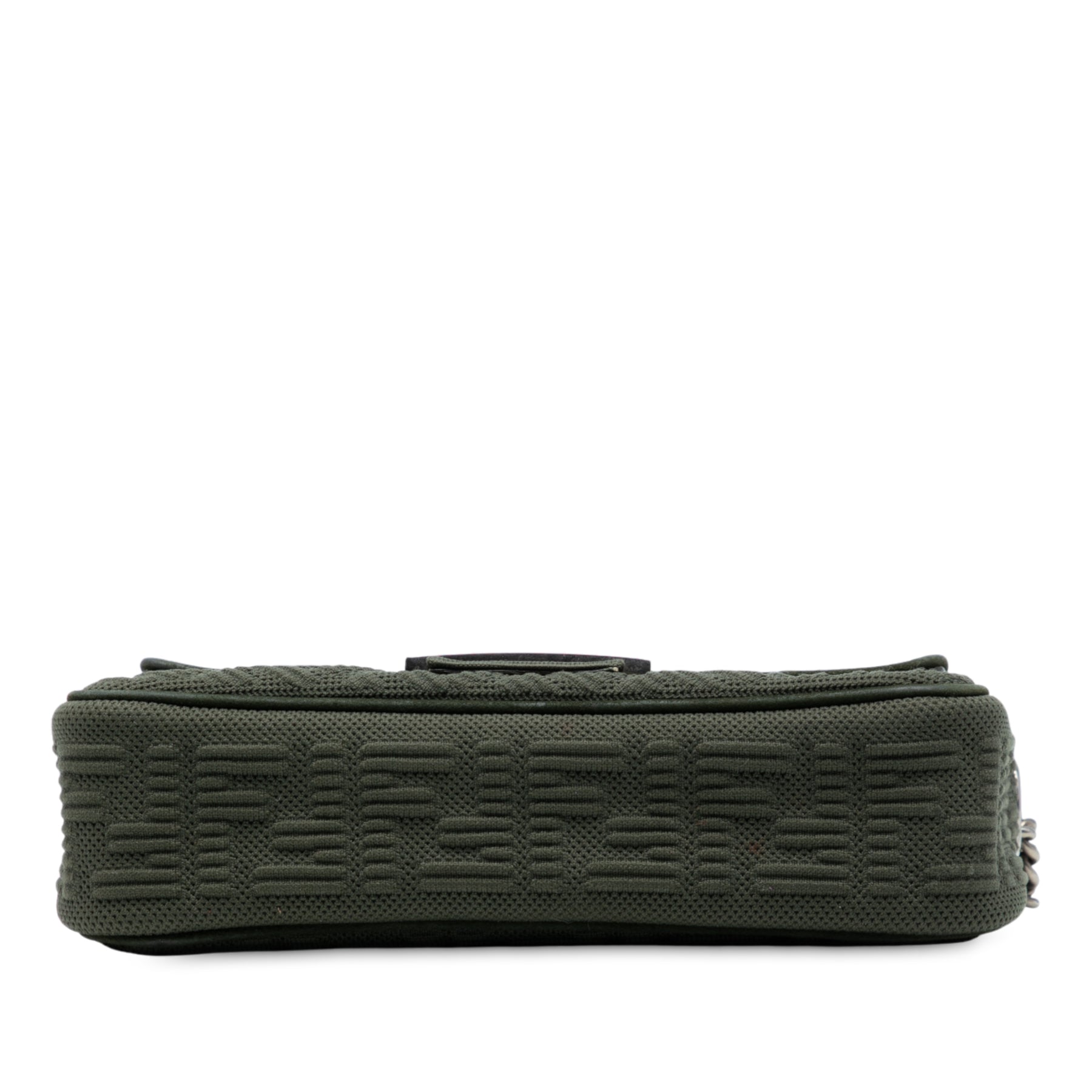 Fendi Zucca Embossed Technical Fabric Chain Midi Baguette Vert