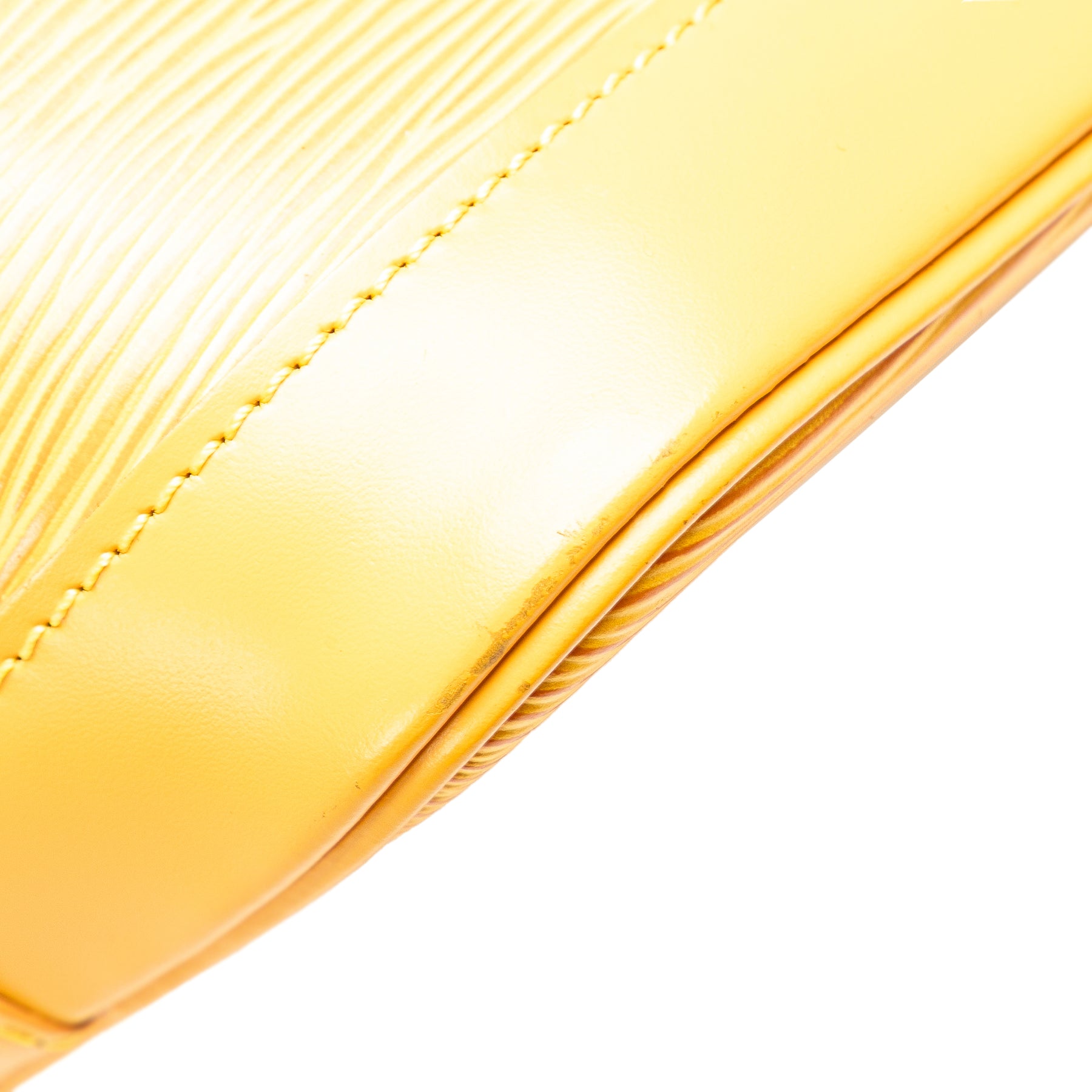 Le sac Alma PM est doté d'un corps en cuir Epi, de poignées roulées en cuir, d'une fermeture éclair sur le dessus et d'une poche intérieure plaquée. Il est en bon état.