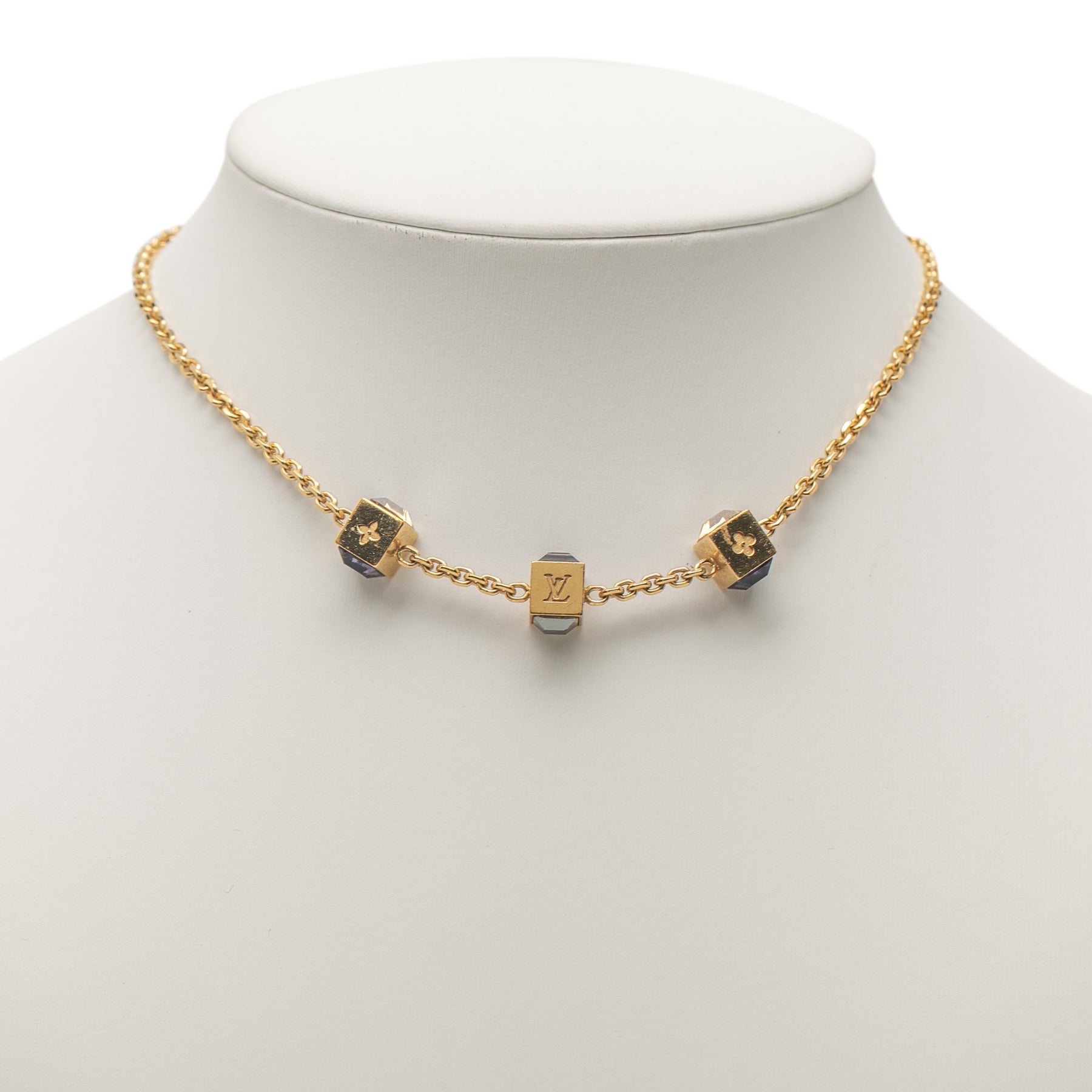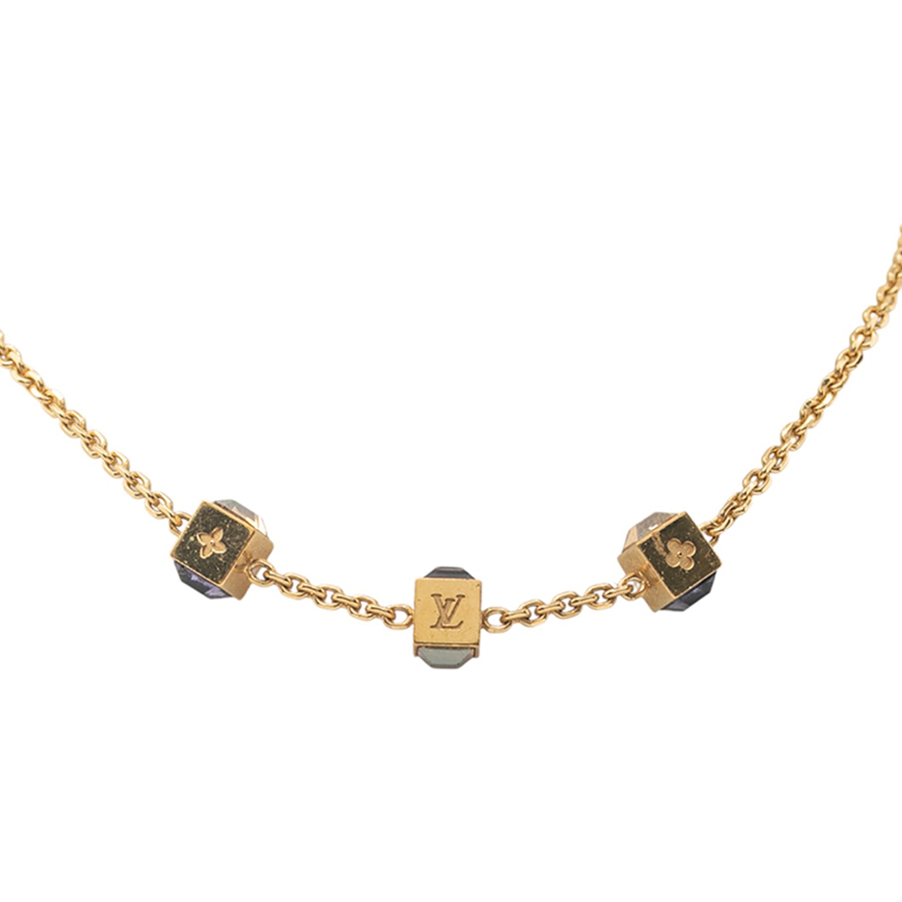 Louis Vuitton Doré Plated Crystal Gamble Collier Doré