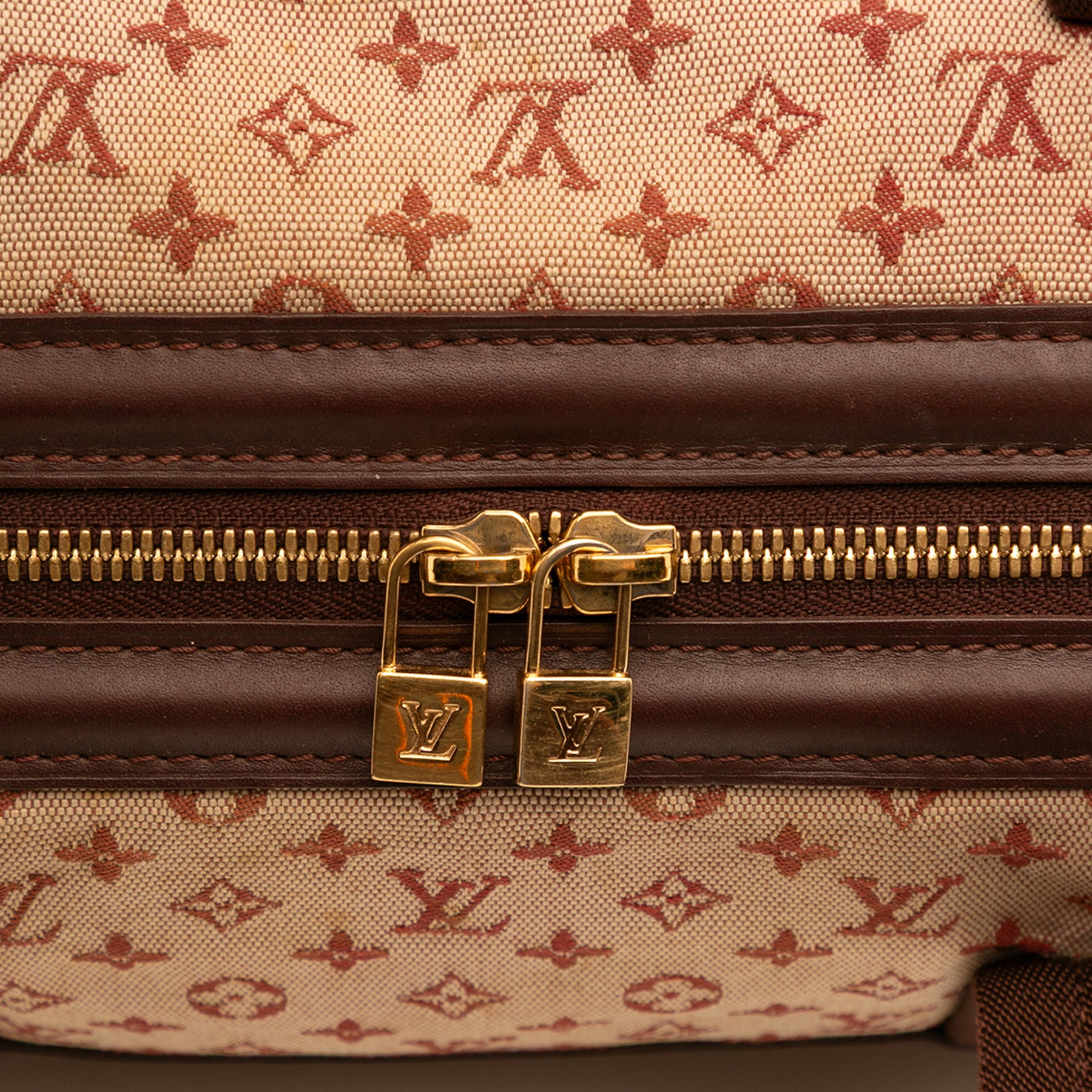 Le sac Josephine GM est confectionné en toile monogrammée Mini Lin avec des finitions en cuir, des anses plates en cuir, une fermeture zippée sur le dessus et des poches intérieures zippées, plaquées et ouvertes. Il est en bon état.