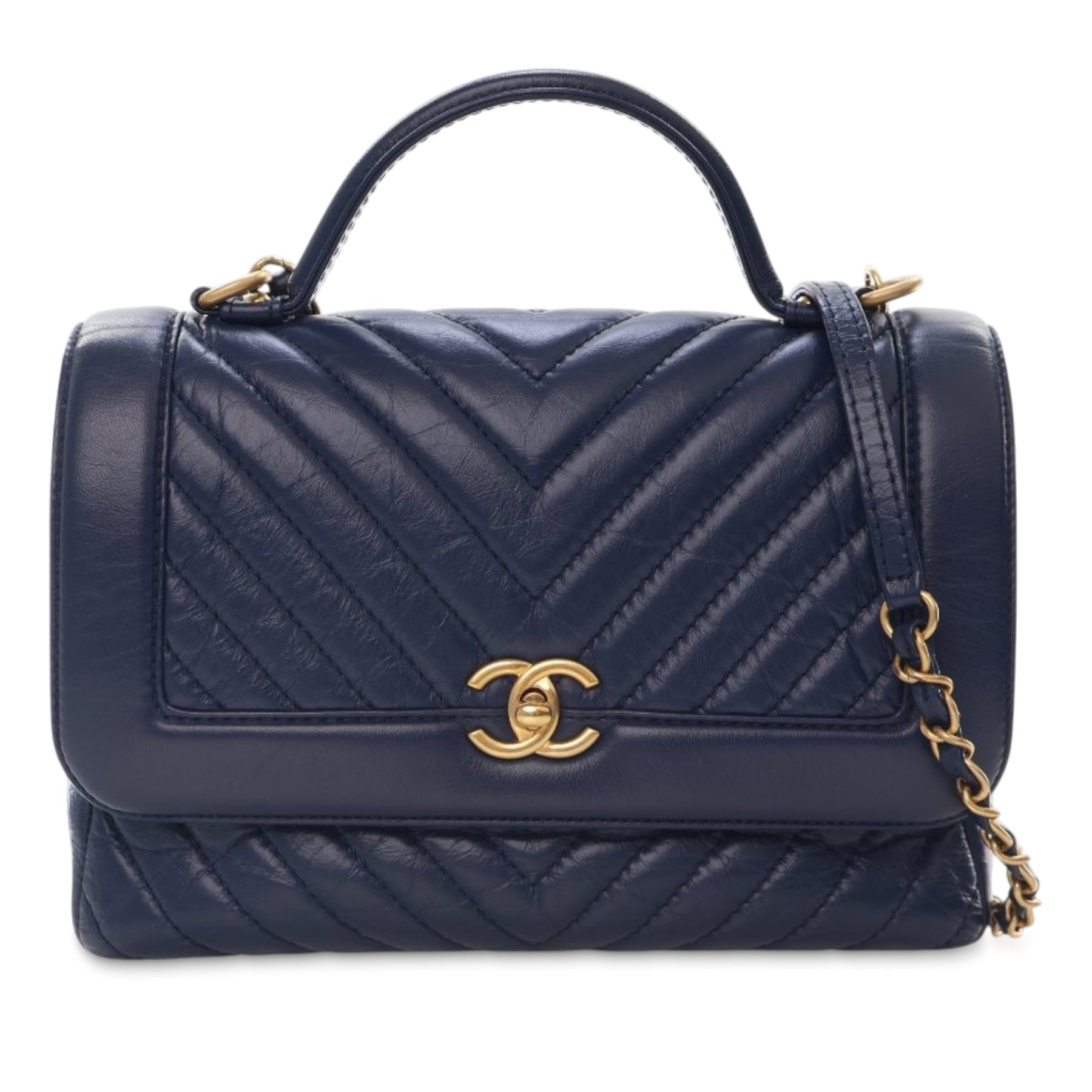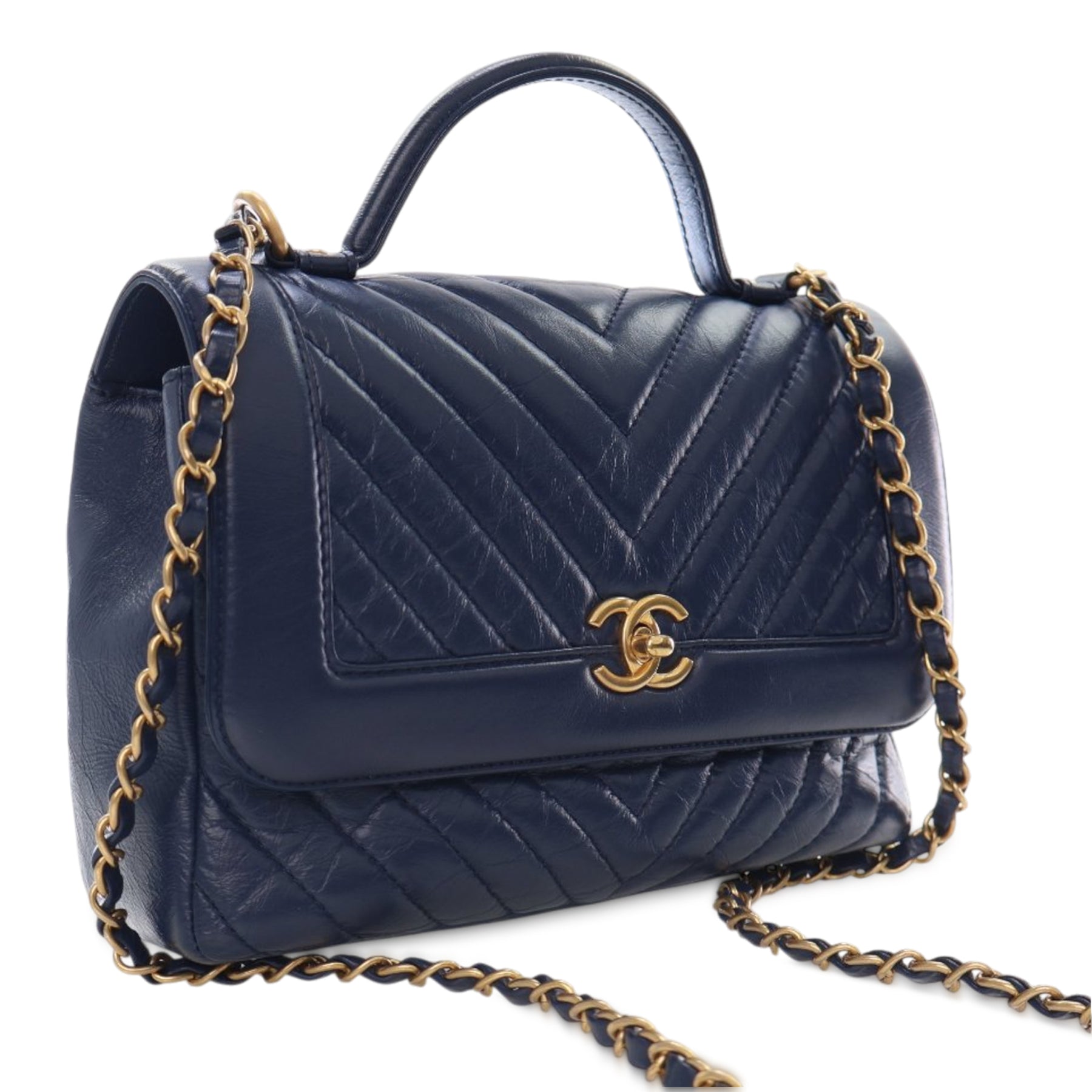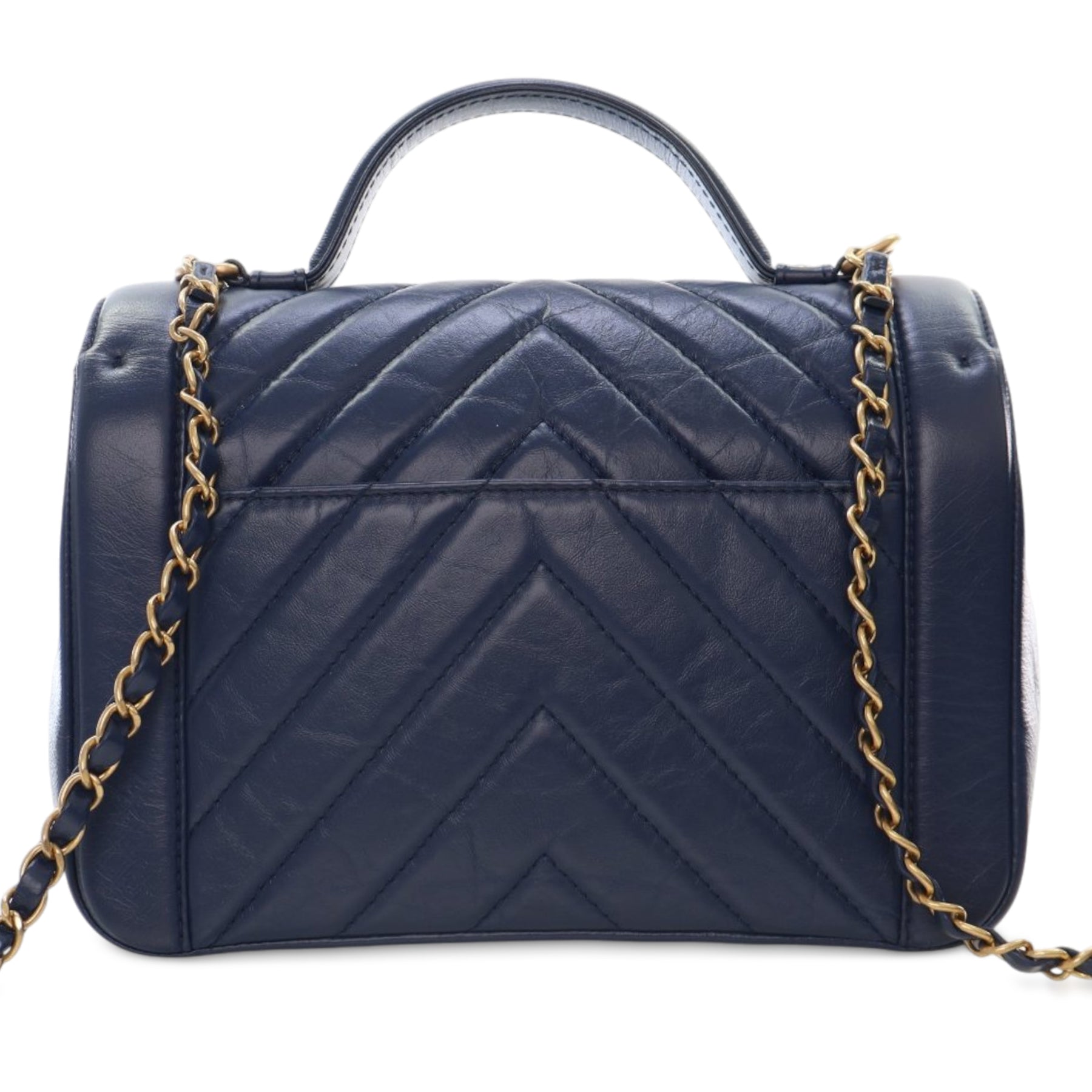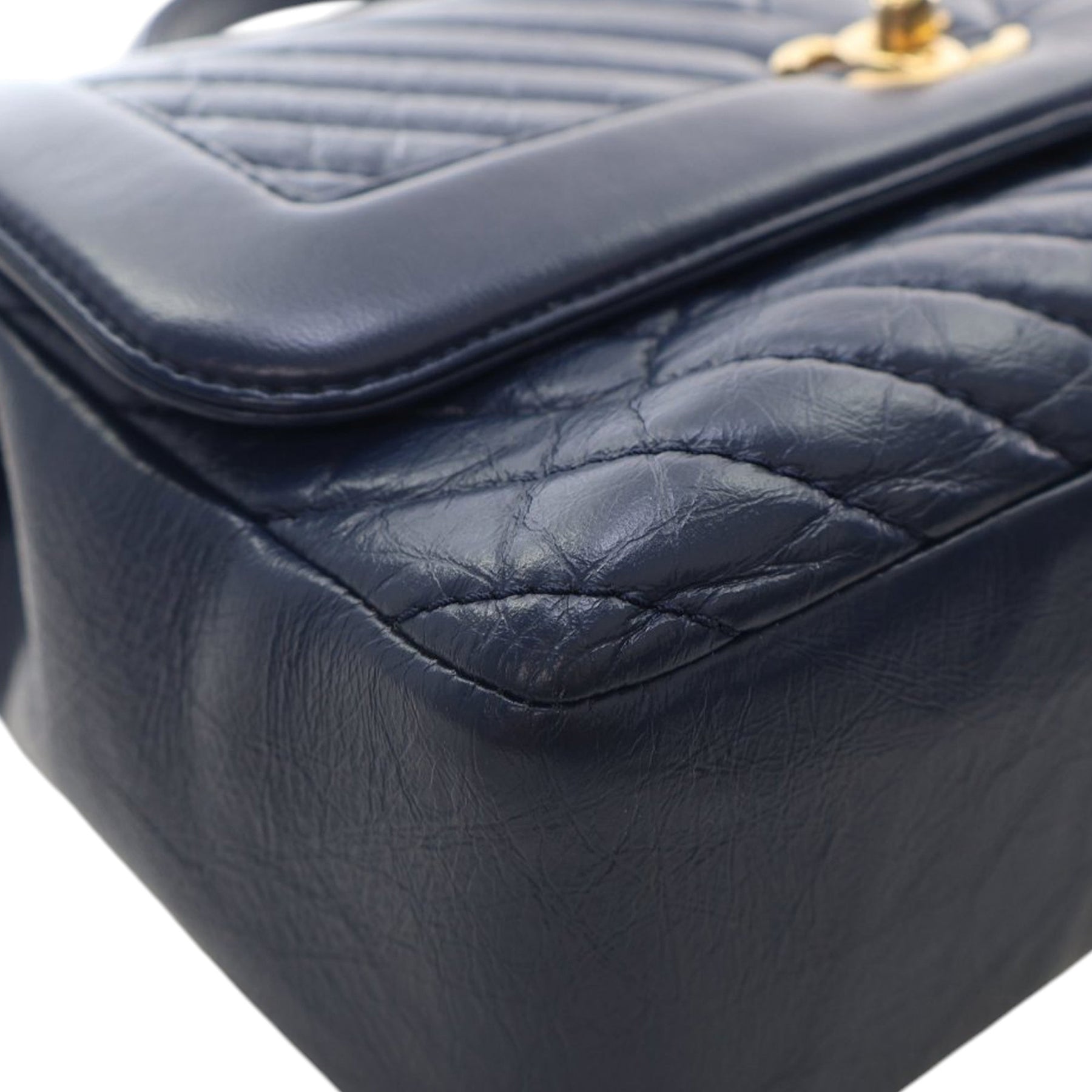 Chanel CC Chevron Aged Cuir de veau Top Handle Flap Bleu