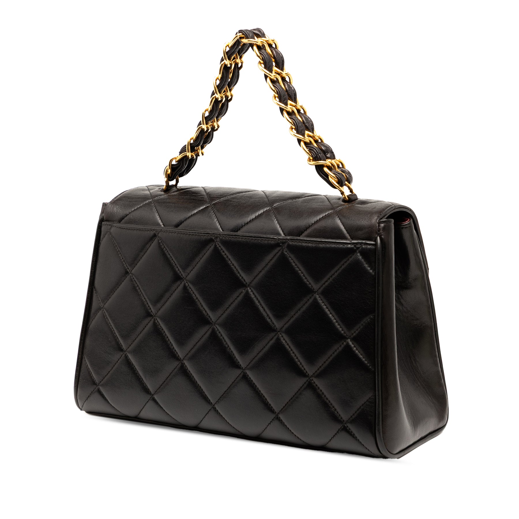 Ce sac à main est doté d'un corps en cuir d'agneau matelassé, d'une poignée en chaîne tressée en cuir, d'un rabat avant avec fermoir à tourniquet CC et d'une poche intérieure zippée. Il est en bon état.