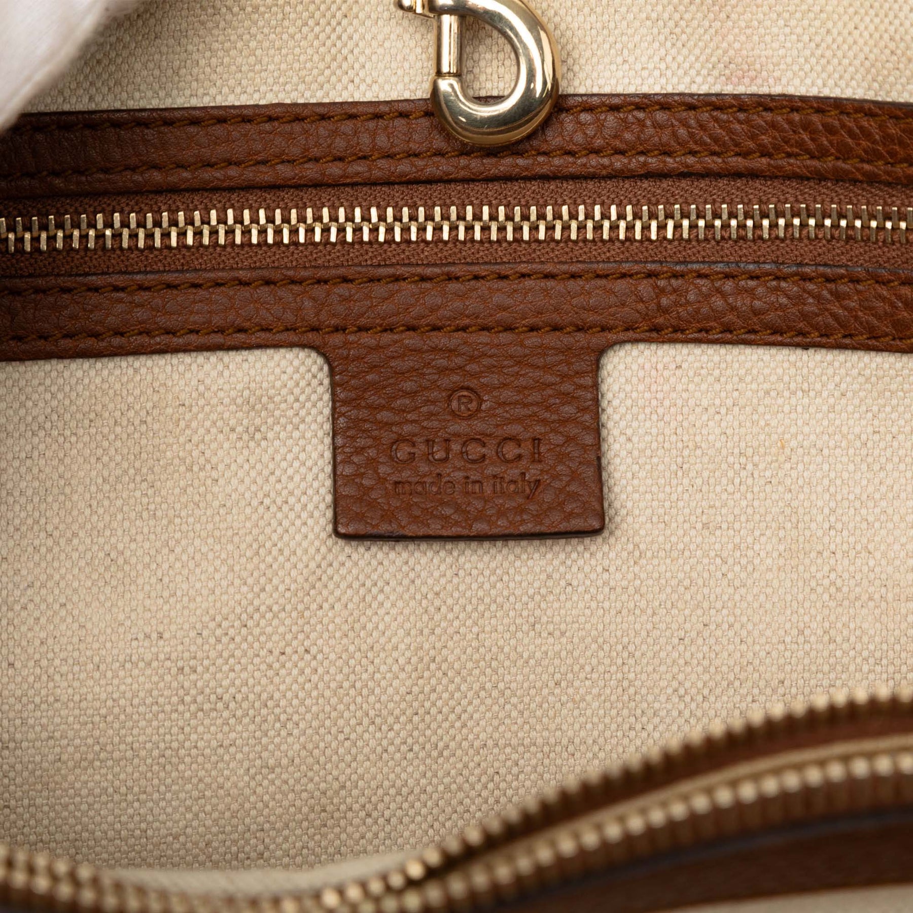 Le sac cabas Bella est en toile avec finitions en cuir, anses tressées à pompon, ouverture sur le dessus, compartiments intérieurs zippés et plaqués, et poches intérieures zippées et plaquées. Il est en bon état.