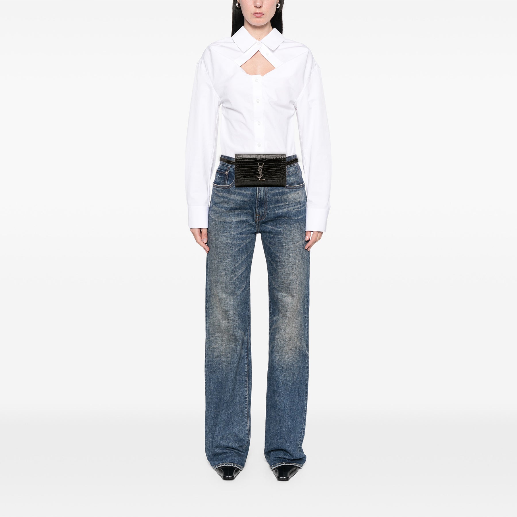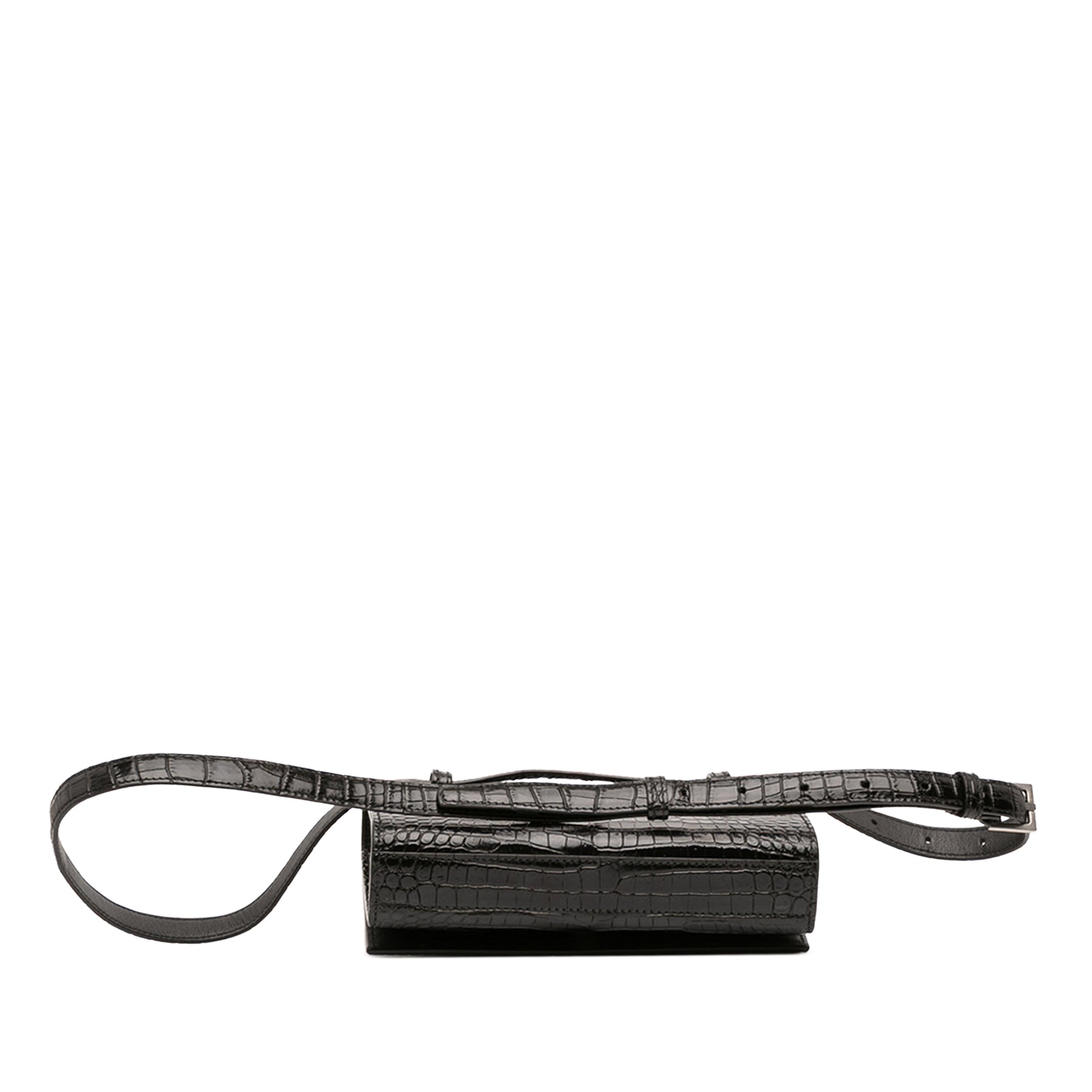 Le sac Kate est confectionné en cuir gaufré et possède une ceinture plate ajustable en cuir, un rabat avant à fermeture magnétique, un compartiment intérieur zippé et des poches intérieures plaquées. Il est en excellent état.