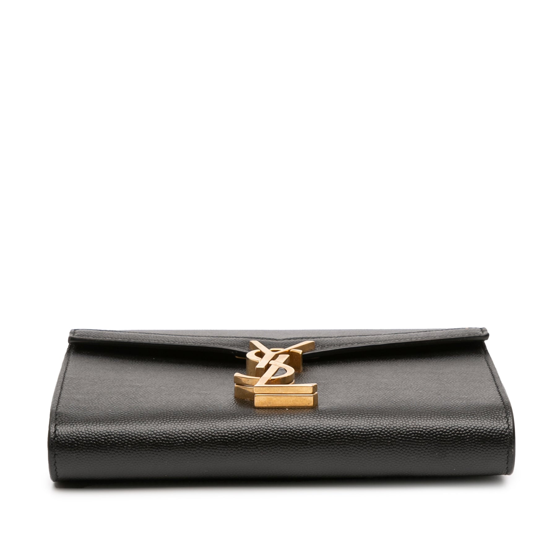 Le sac Cassandra est en cuir, possède un rabat avant à fermeture magnétique, une bandoulière chaîne amovible et des poches intérieures plaquées. Il est en excellent état.