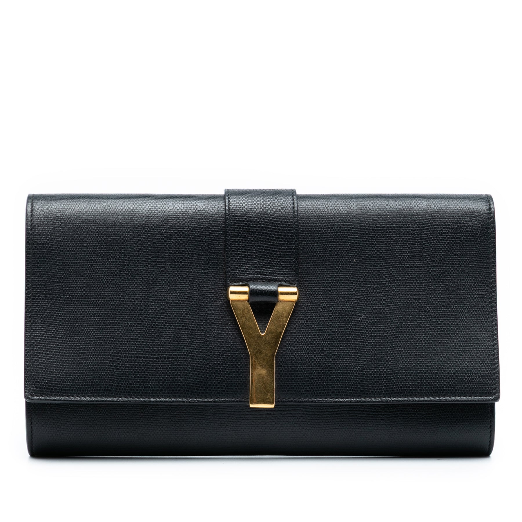 La pochette Chyc Ligne est en cuir, avec un rabat avant orné d'un Y doré et une poche intérieure plaquée. Elle est en bon état.