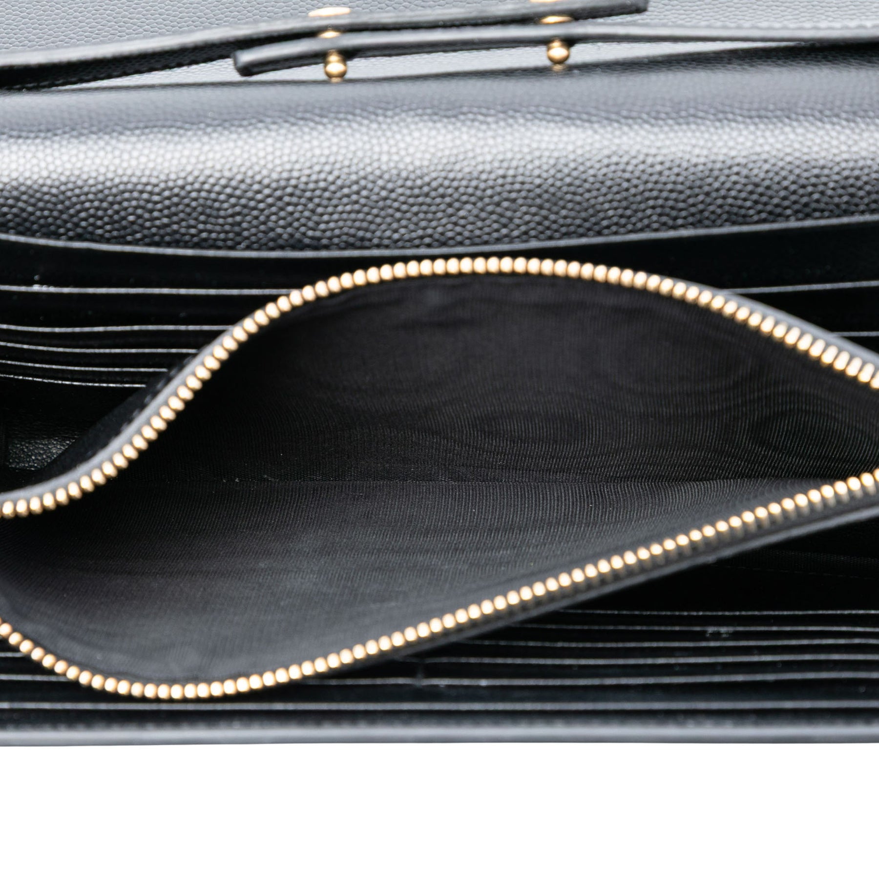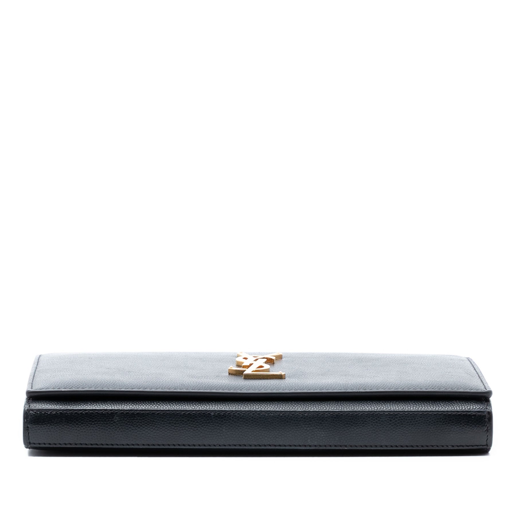 Le sac bandoulière Kate est en cuir, possède une bandoulière chaîne dorée, un rabat orné du logo YSL en métal et d'une fermeture magnétique, ainsi qu'une poche intérieure plaquée. Il est en bon état.