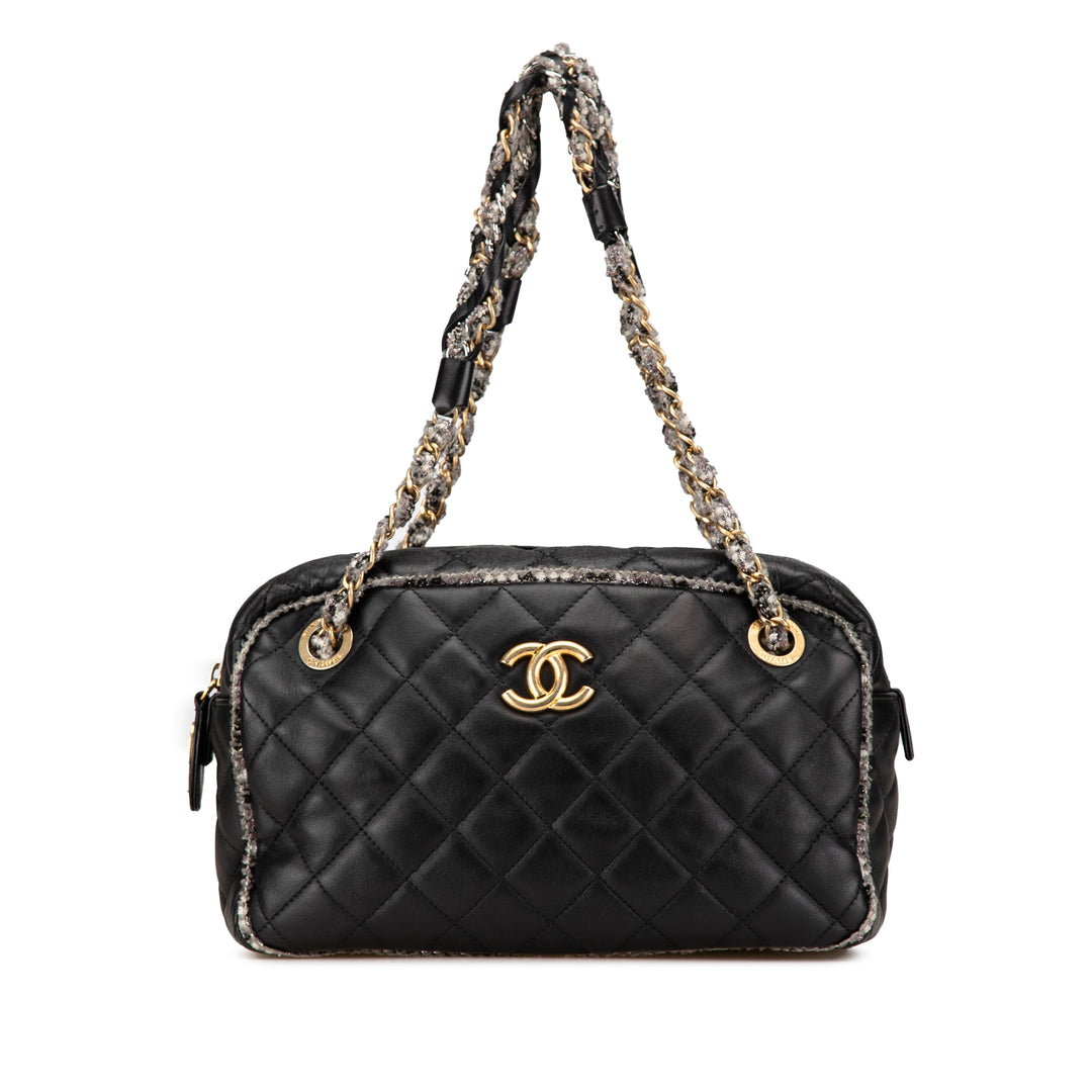 Chanel CC Matelassé Cuir d’agneau Tweedy Bowler Sac