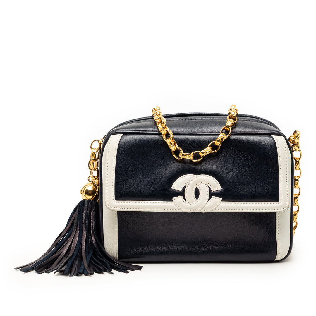 Chanel CC Cuir d’agneau Border Pompon Chain Sac caméra