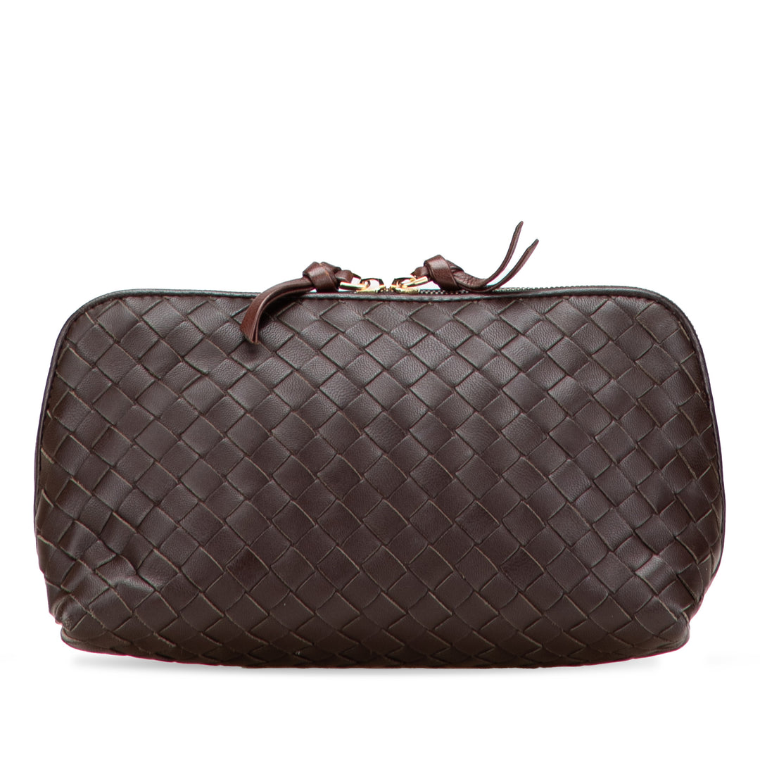 Bottega Veneta Nappa Intrecciato Cosmetic Pochette Marron