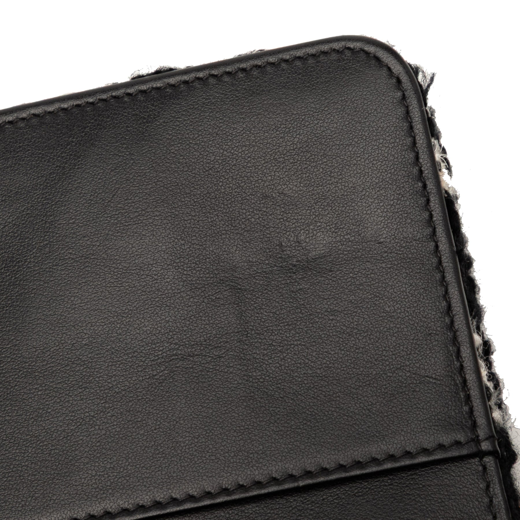 Ce portefeuille à chaîne est en tweed, avec une bandoulière en chaîne tressée de cuir, un rabat avant à fermeture magnétique, des poches intérieures zippées et plaquées, ainsi qu'une pochette zippée amovible. Il est en excellent état.