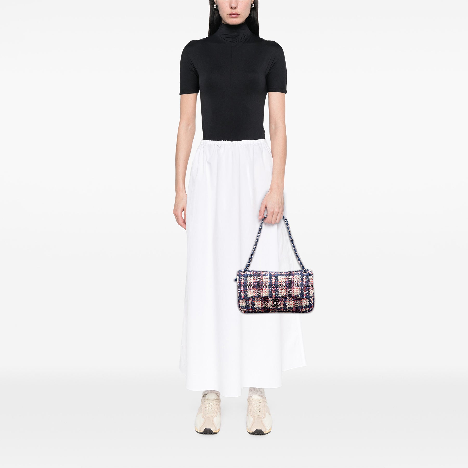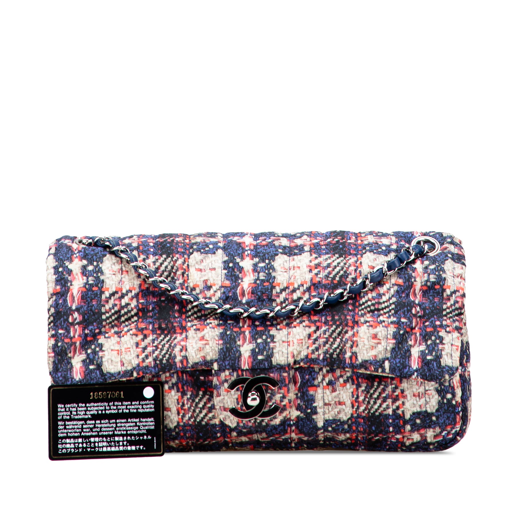 Chanel CC Nylon Tweed Print Simple rabat Bleu