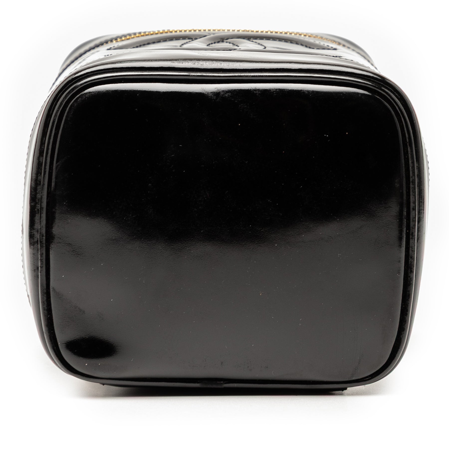 Cette trousse de toilette est en cuir verni et possède une poignée supérieure, une fermeture zippée et une poche intérieure plaquée. Elle est en bon état.