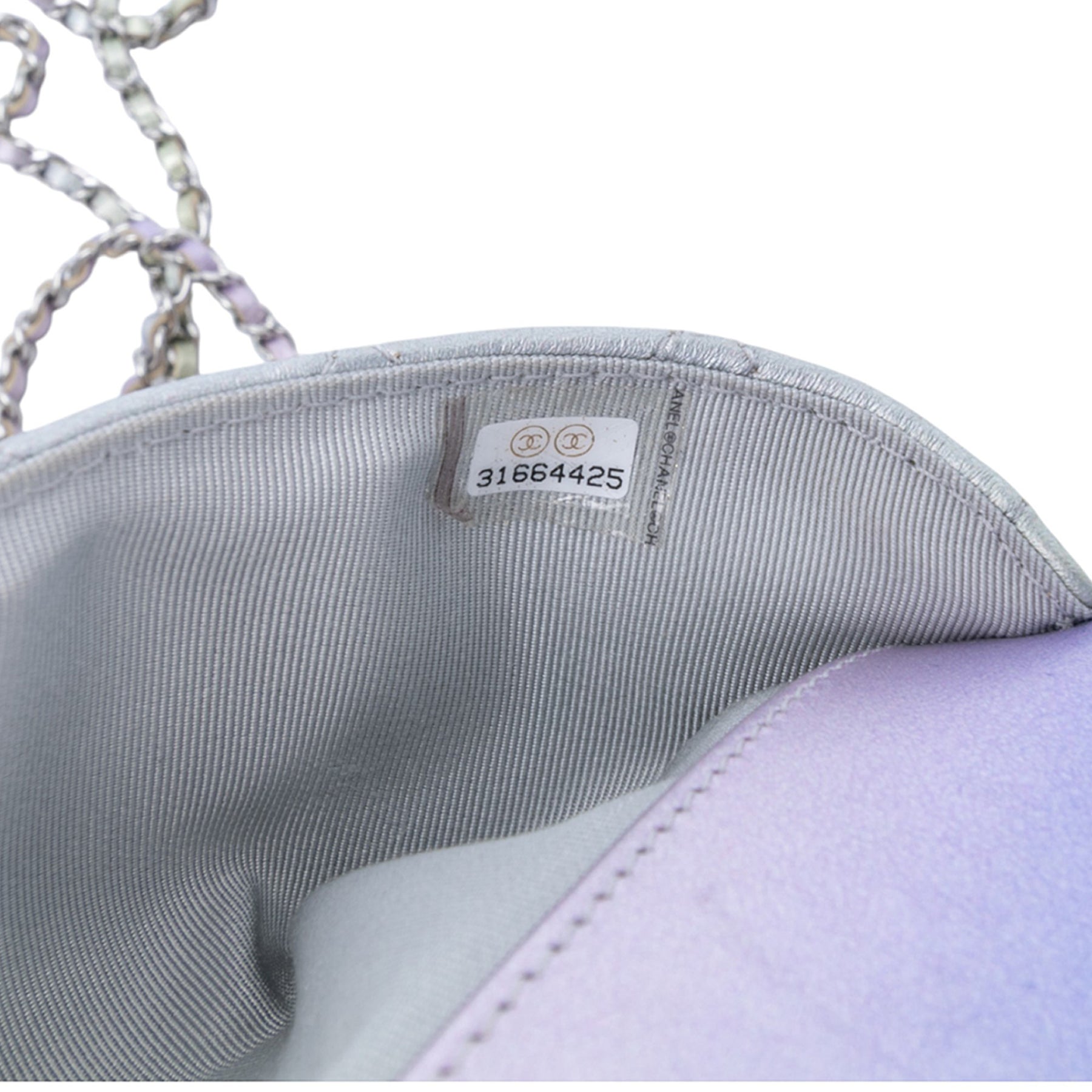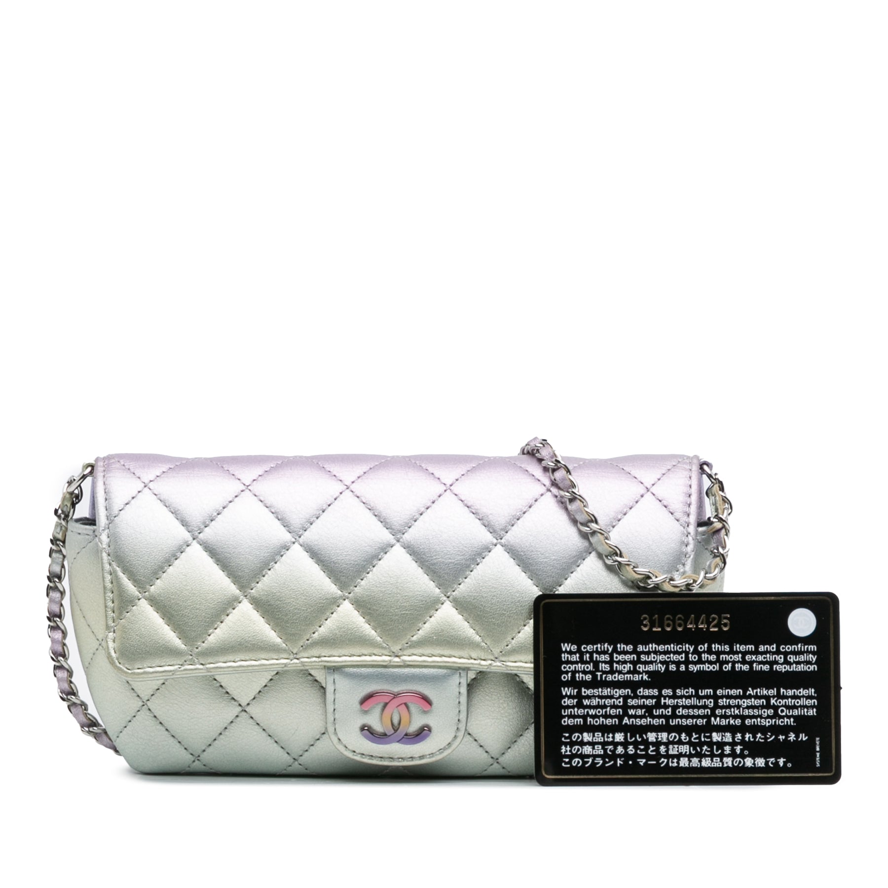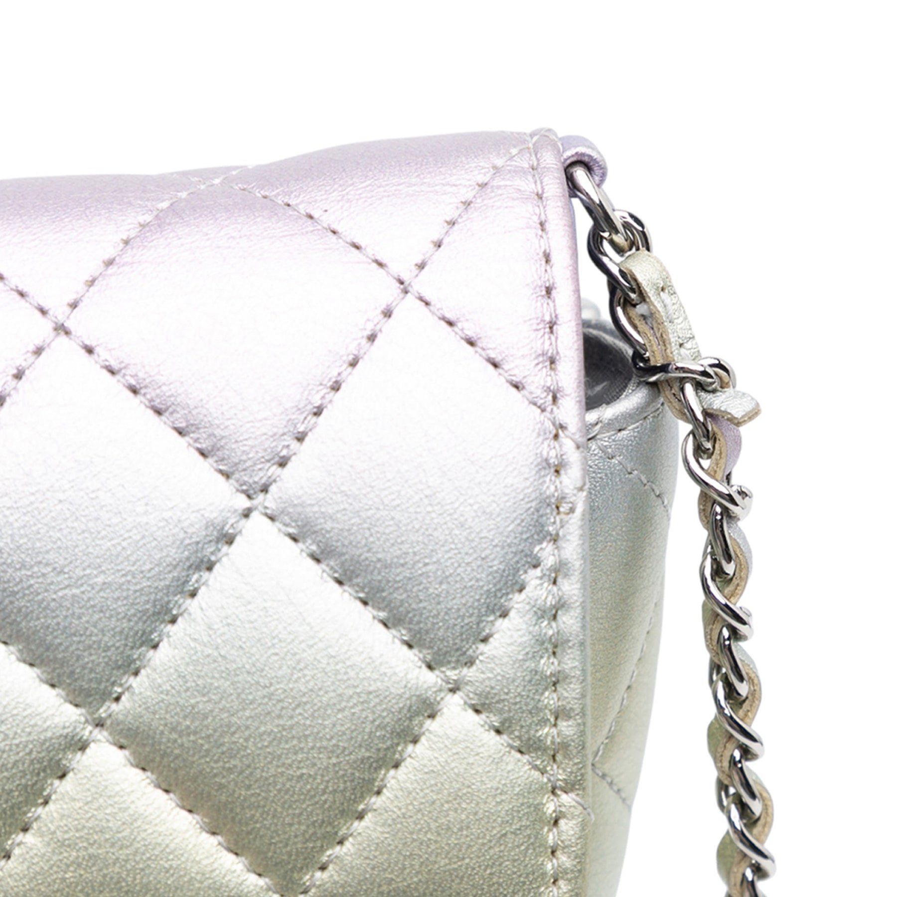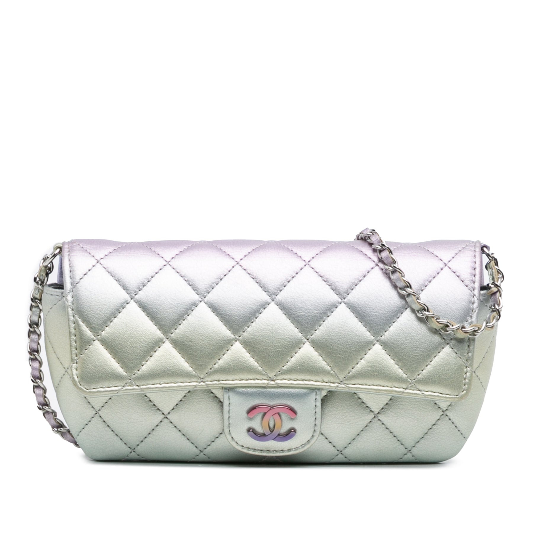 Chanel Gradient Métallisé Quilted Cuir de veau Glasses Étui With Chain Argenté