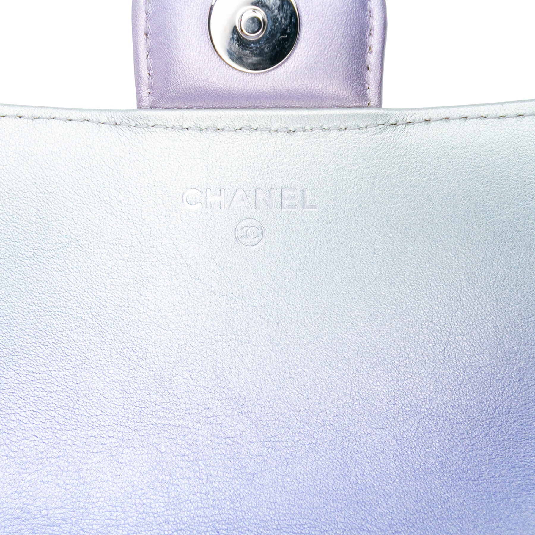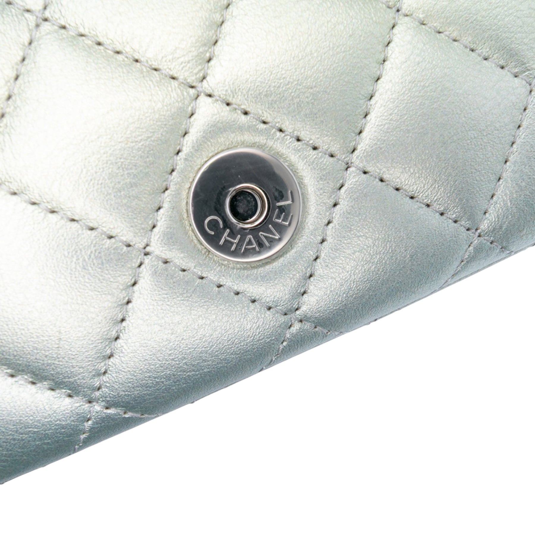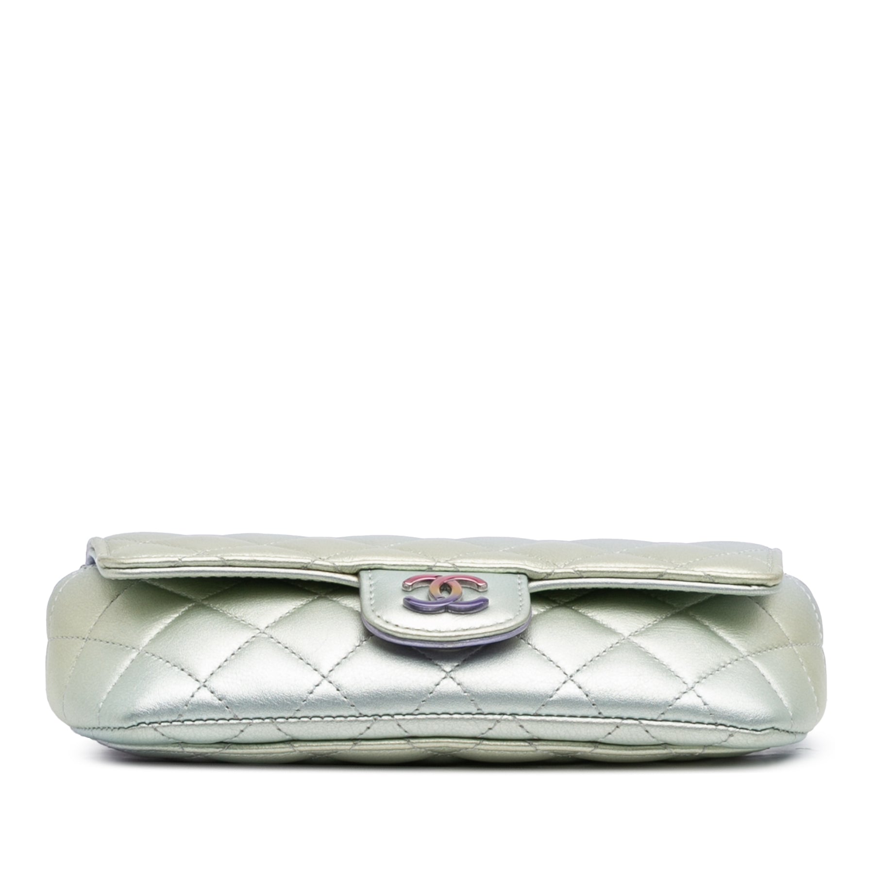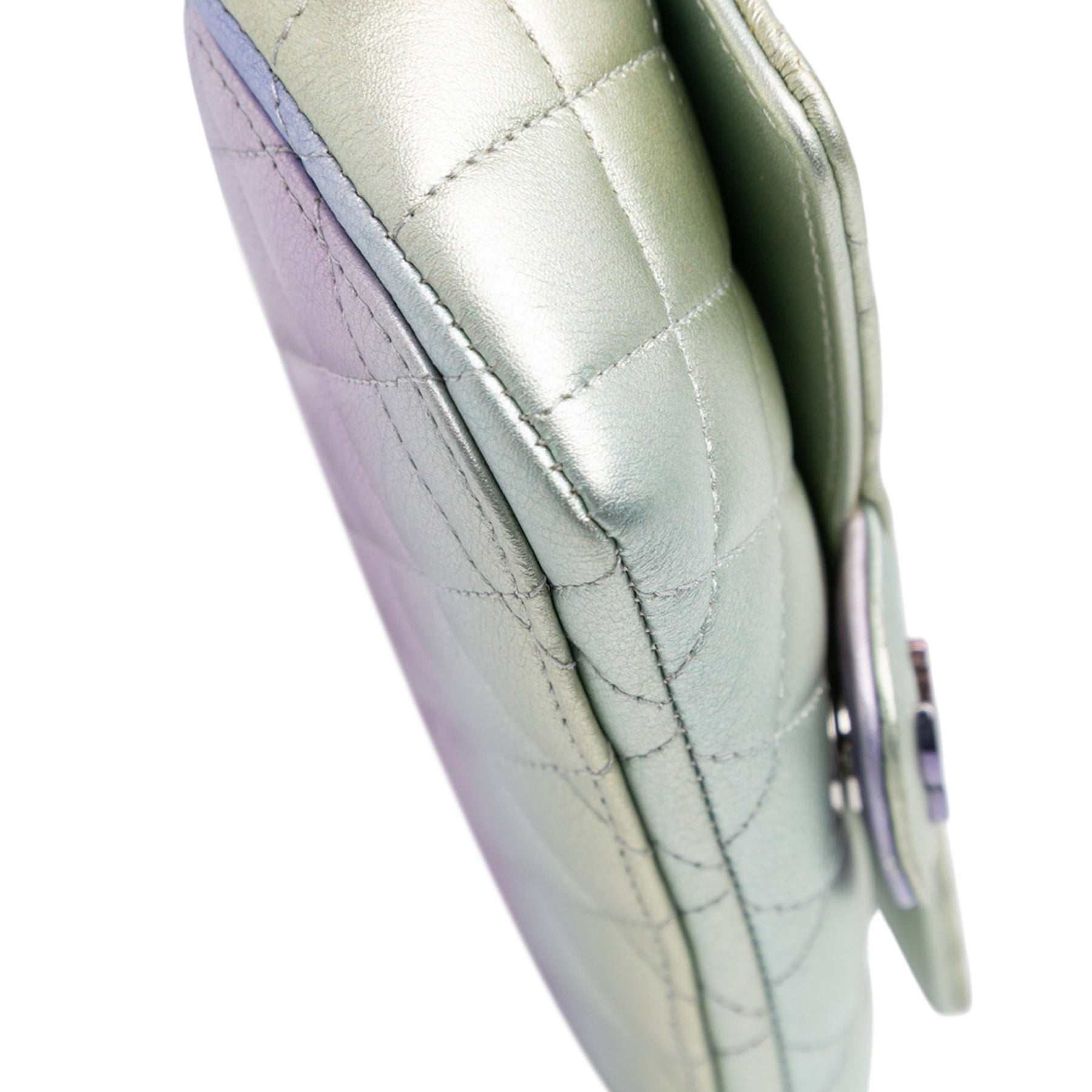 Chanel Gradient Métallisé Quilted Cuir de veau Glasses Étui With Chain Argenté