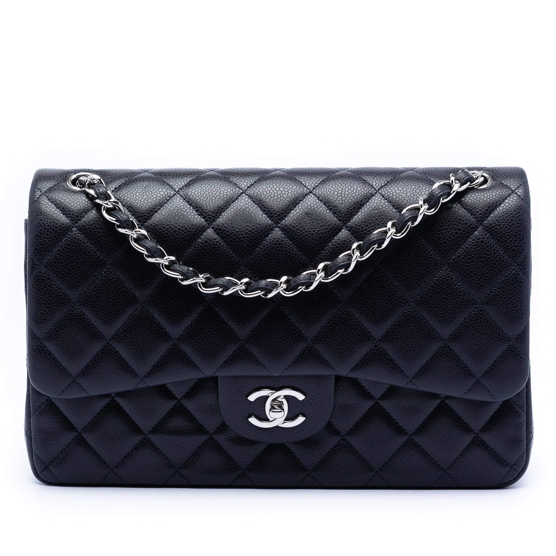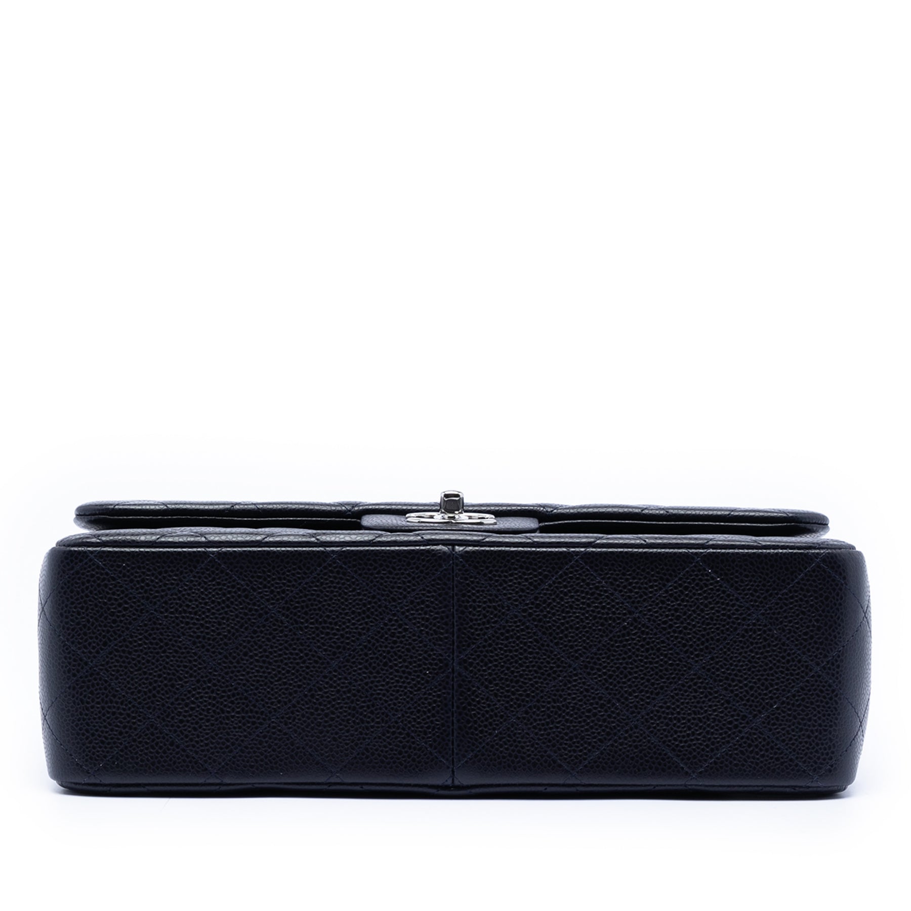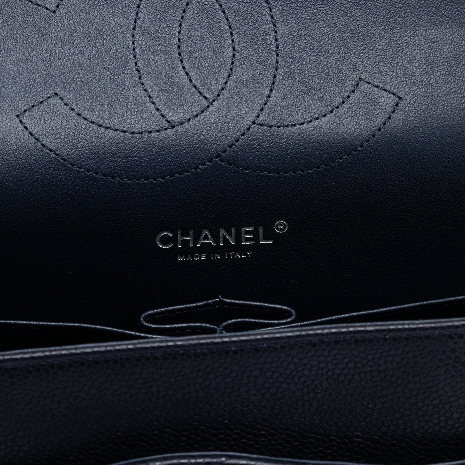 Ce sac bandoulière est confectionné en cuir caviar matelassé et possède des bandoulières en chaîne tressée, un double rabat supérieur avec fermoir CC, une poche plaquée extérieure au dos, ainsi que des poches intérieures zippées et plaquées. Il est en excellent état.