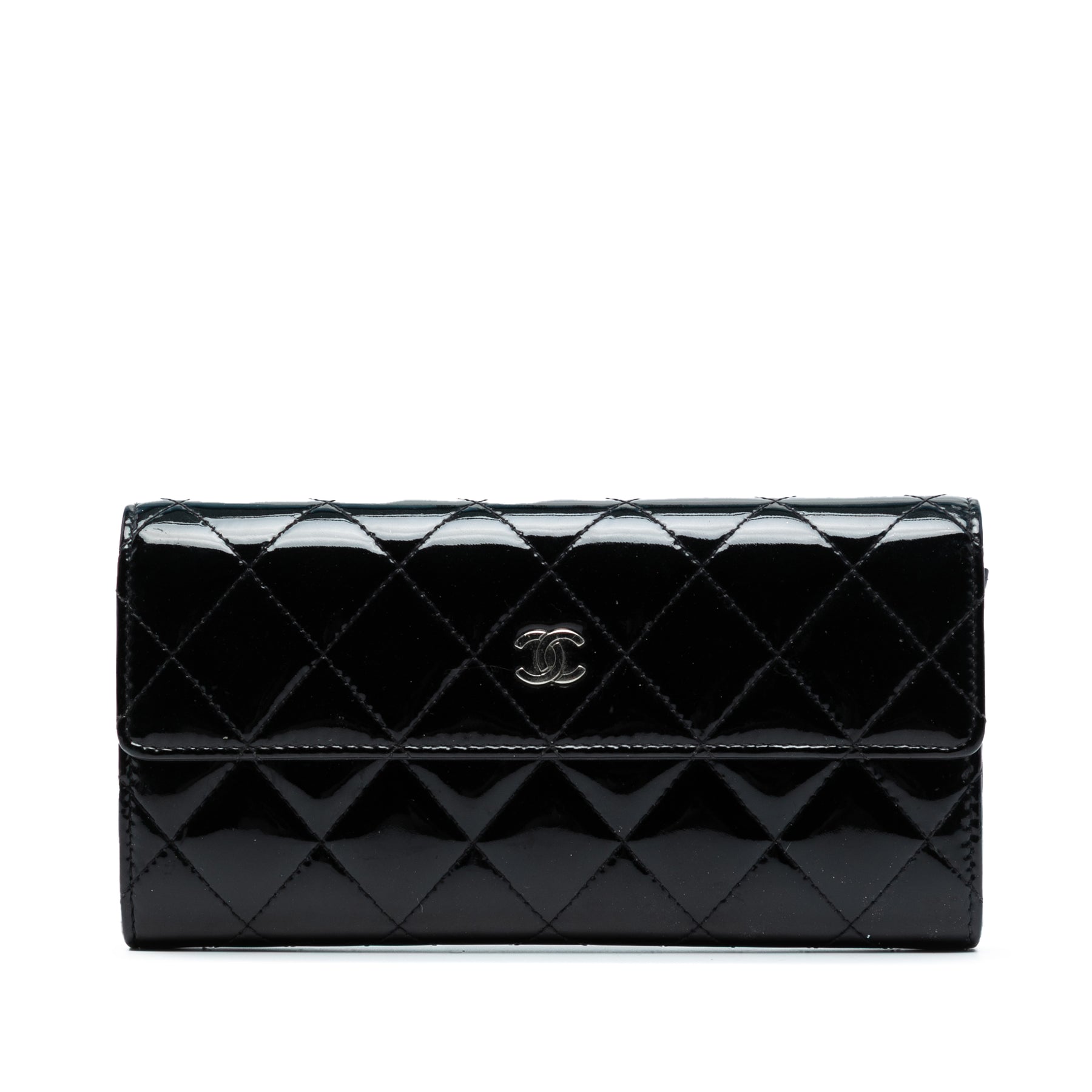 Chanel Large CC Quilted Cuir verni Flap Wallet Noir