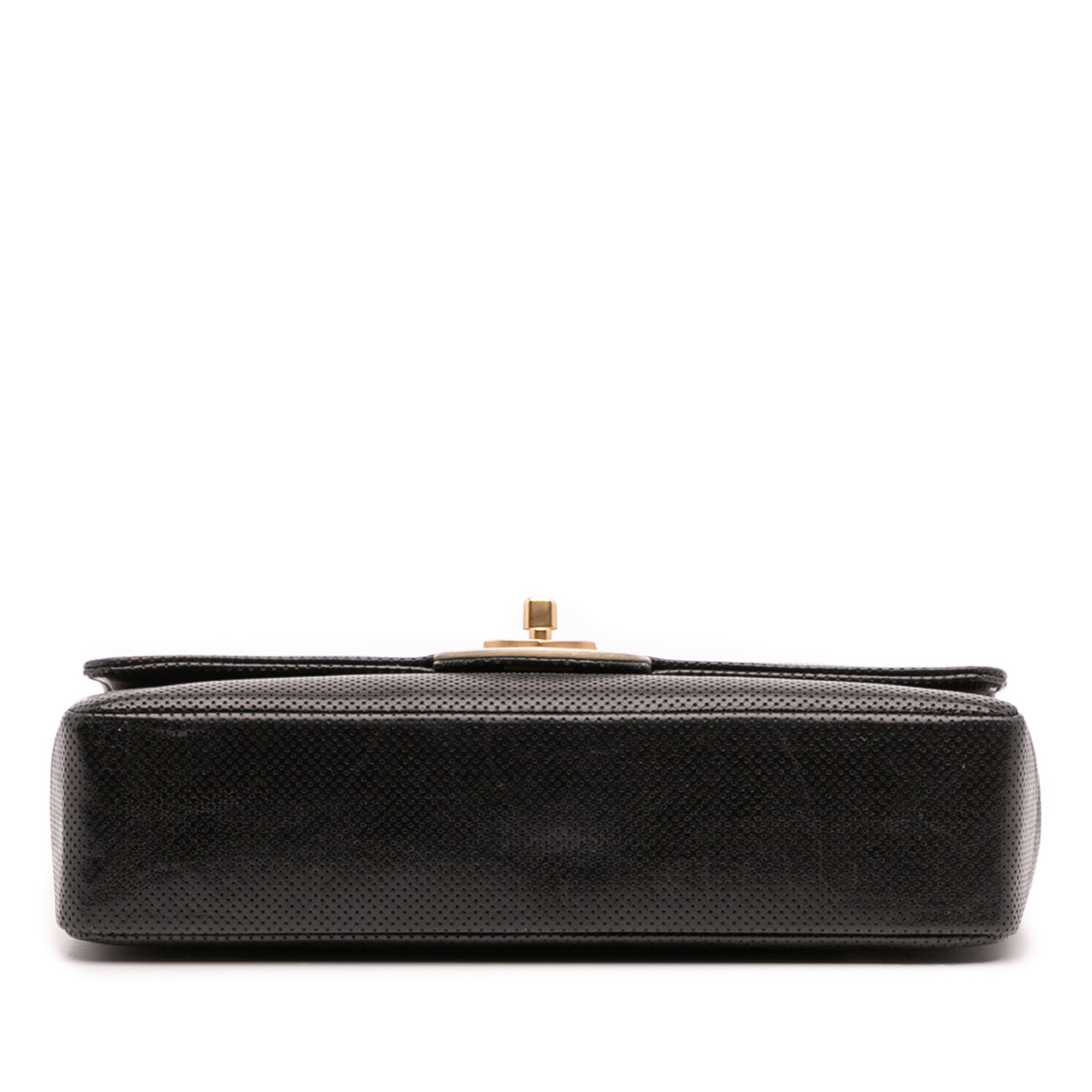 Chanel Medium CC Perforated Cuir de veau Simple rabat Noir