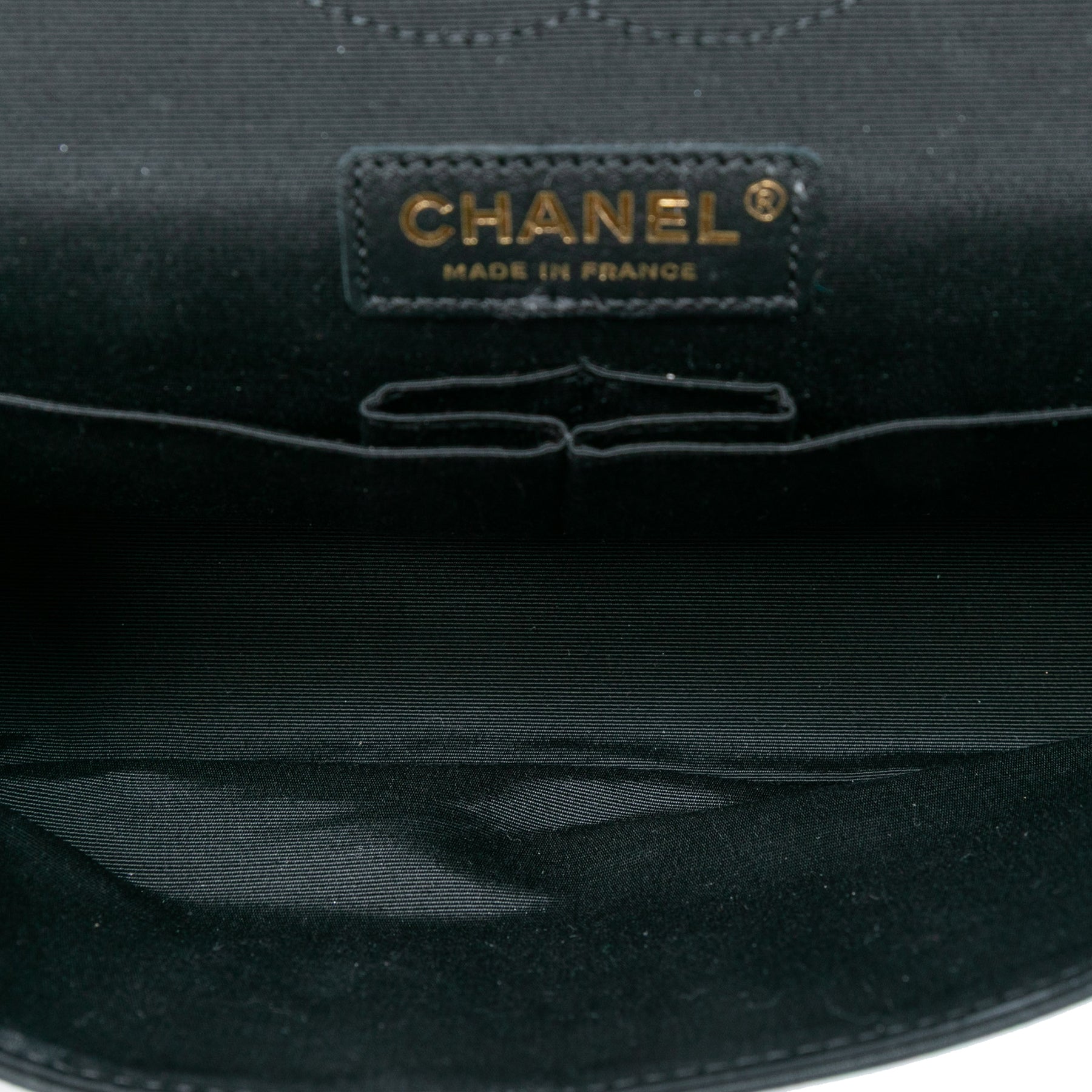 Ce sac bandoulière est confectionné en cuir caviar et possède une bandoulière en chaîne tressée, un double rabat avant avec fermoir CC, une poche plaquée extérieure au dos, ainsi que des poches intérieures zippées et plaquées. Il est en excellent état.