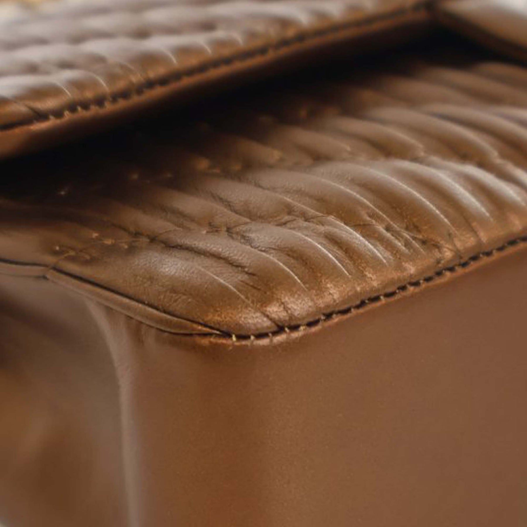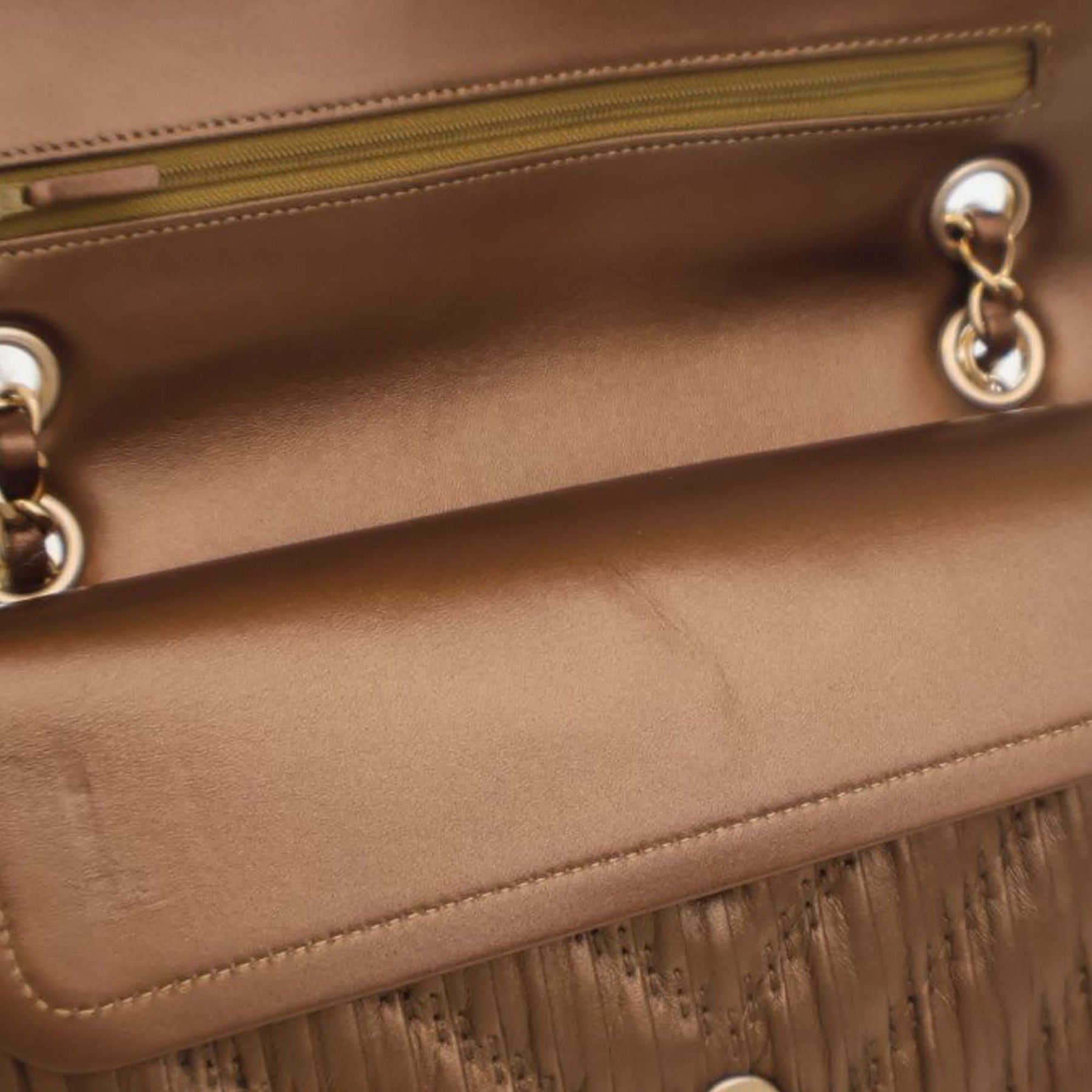 Ce sac bandoulière est en cuir, avec une bandoulière en chaîne tressée dorée, un rabat orné du double C et d'une fermeture à tourniquet, une poche plaquée extérieure au dos et des poches plaquées intérieures. Il est en excellent état.