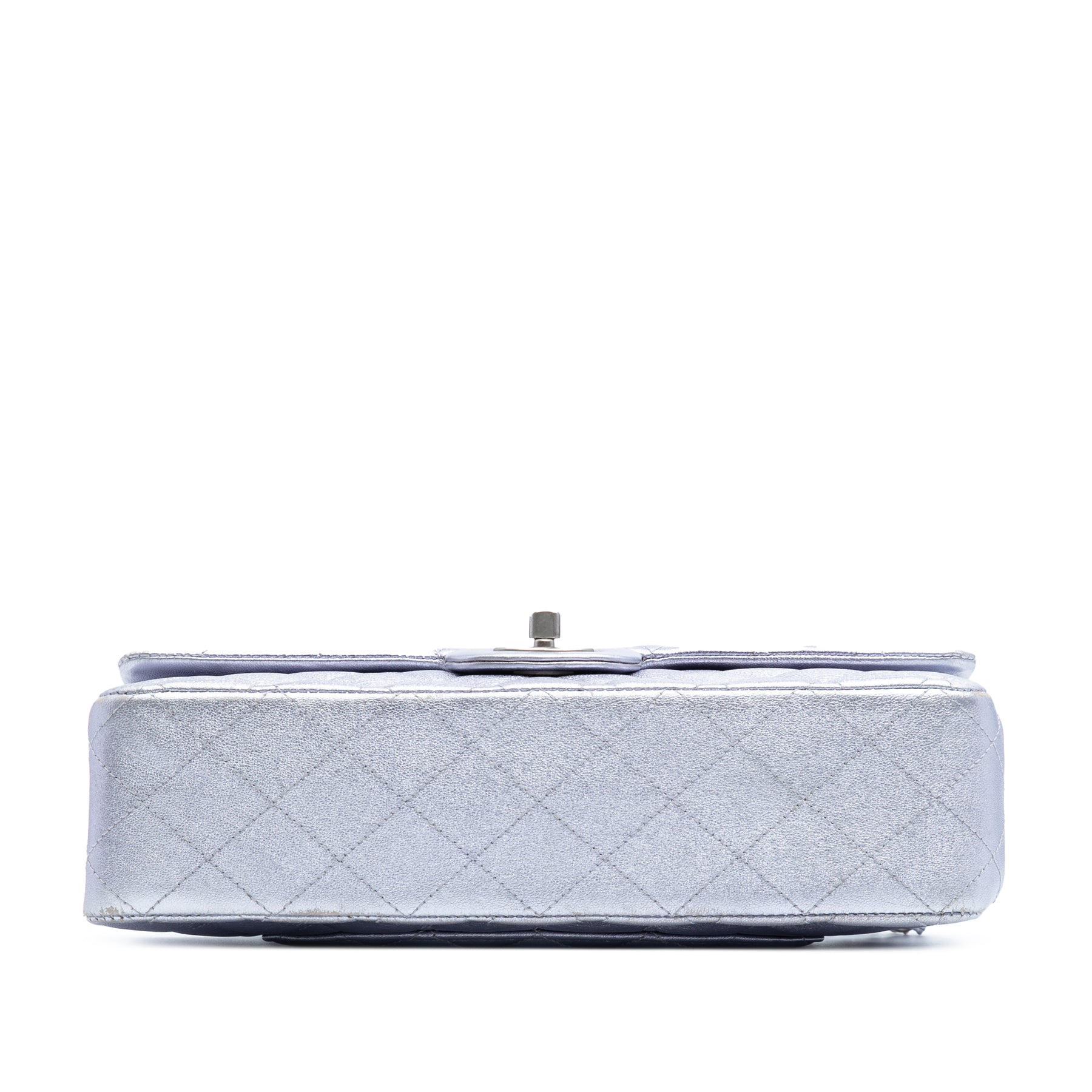 Chanel Medium Classic Métallisé Cuir de veau Double rabat Argenté