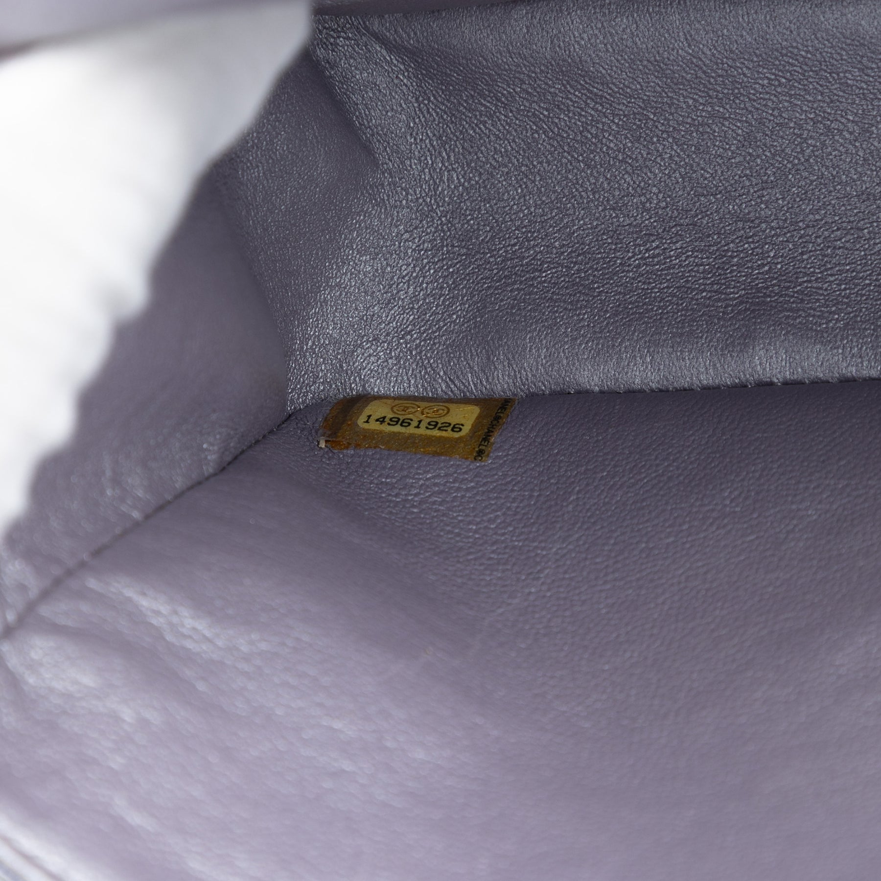 Le sac classique à double rabat présente un corps en cuir de veau matelassé, des finitions dorées, des bandoulières en cuir tressé, une poche extérieure plaquée au dos, un double rabat avant avec des C entrelacés et un fermoir à vis, ainsi que des poches intérieures ouvertes. Il est en bon état.