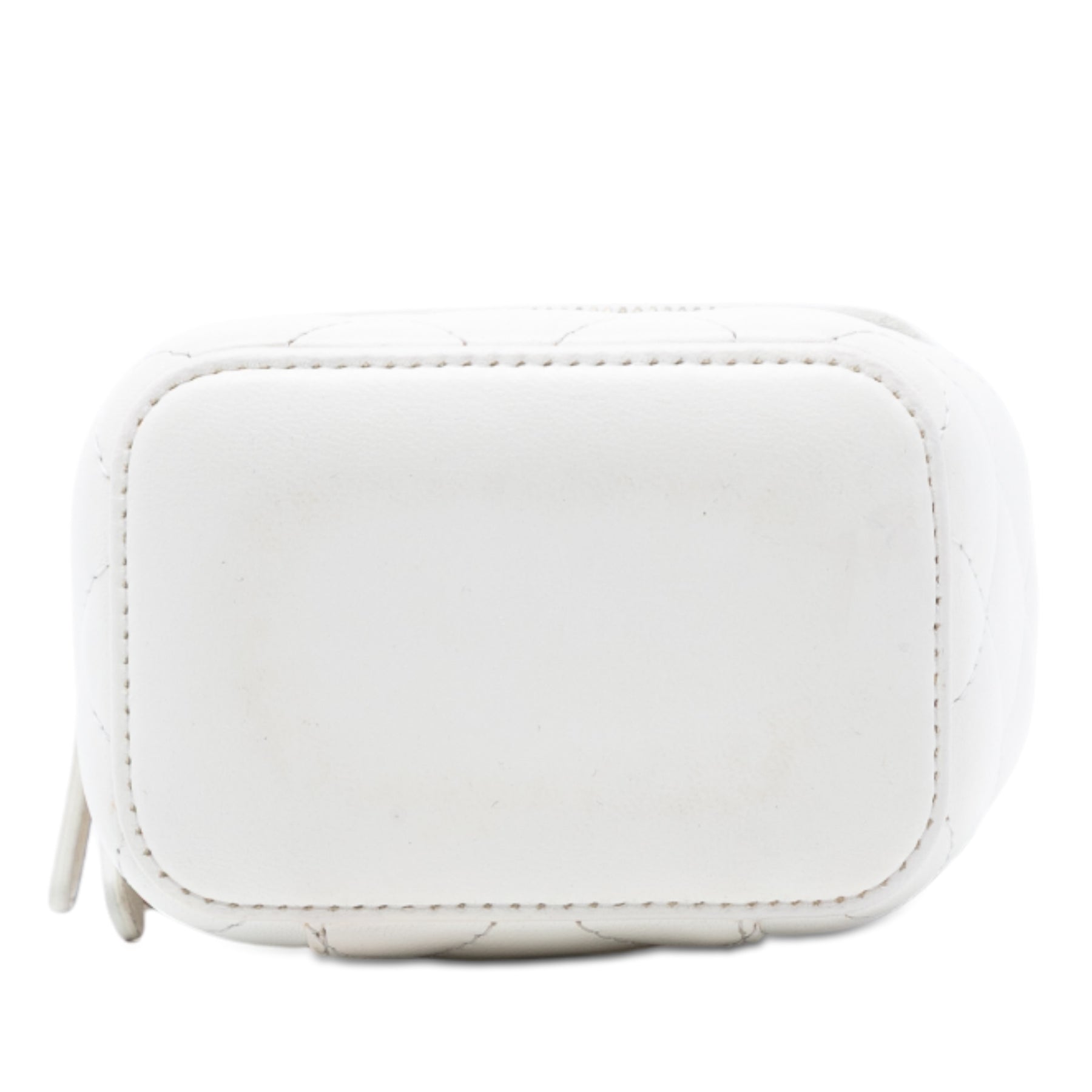 Ce sac bandoulière est confectionné en cuir d'agneau matelassé et possède une bandoulière en chaîne tressée, une fermeture zippée à double sens et une poche intérieure ouverte. Il est en excellent état.