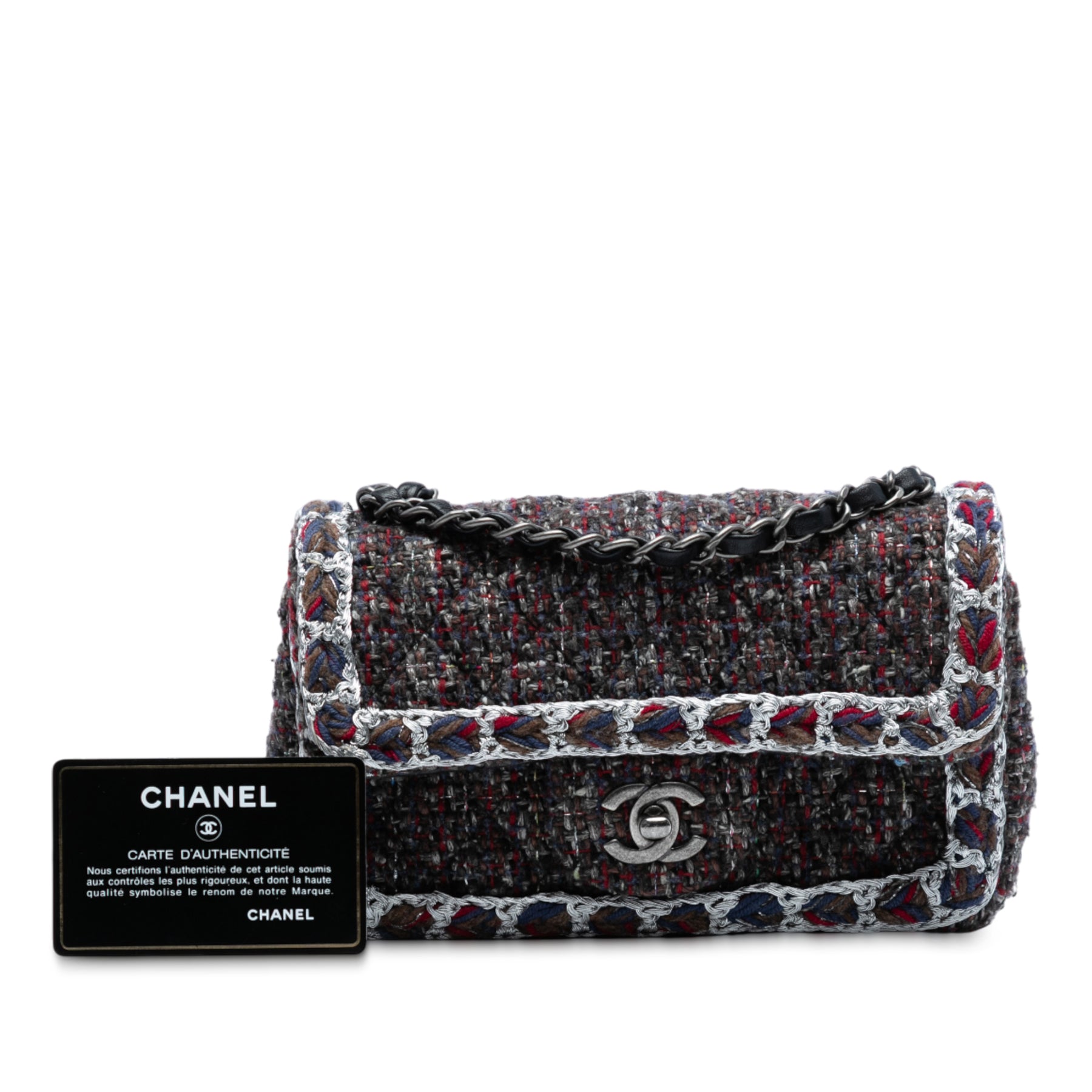 Chanel Mini Rectangular Classic Braided Tweed Simple rabat Noir