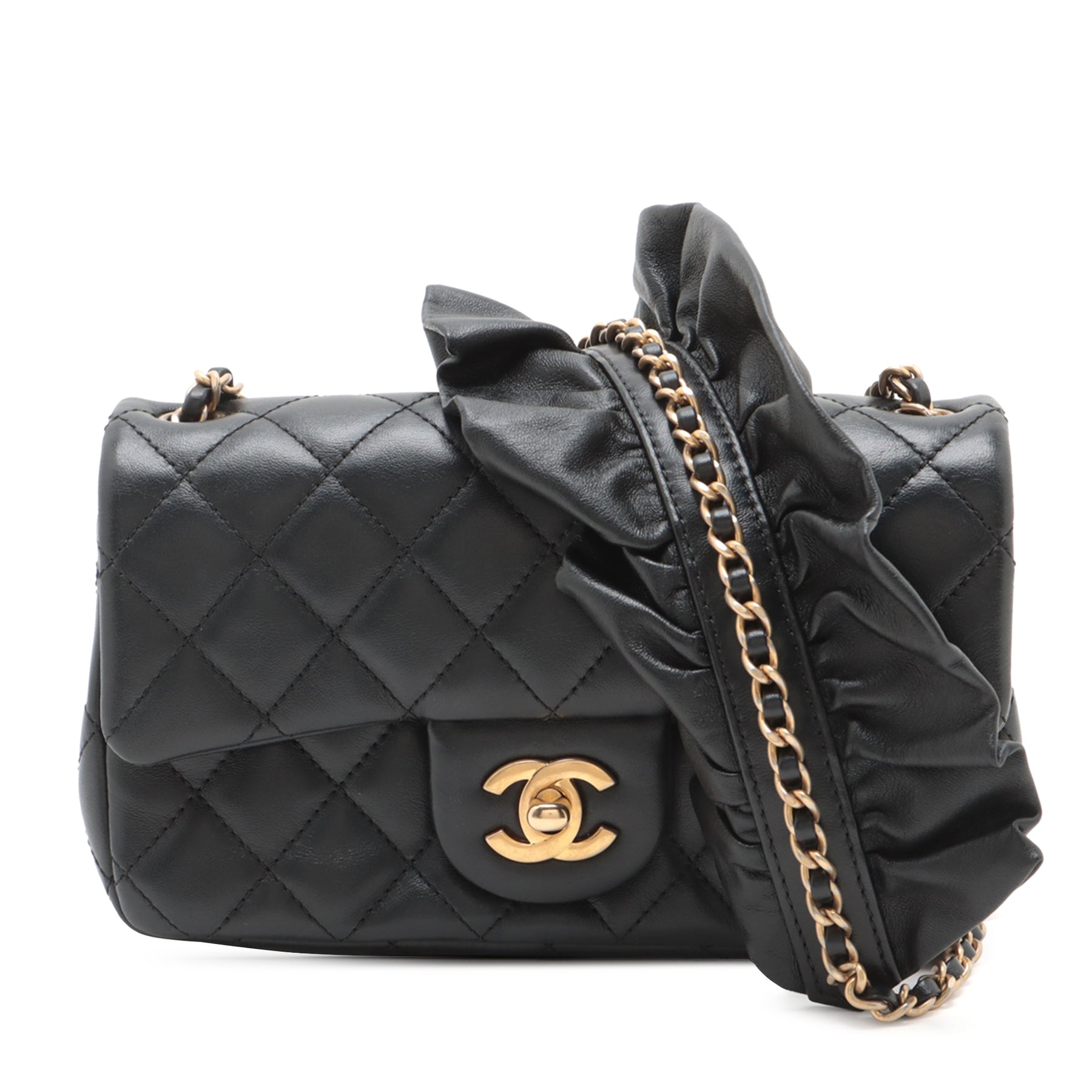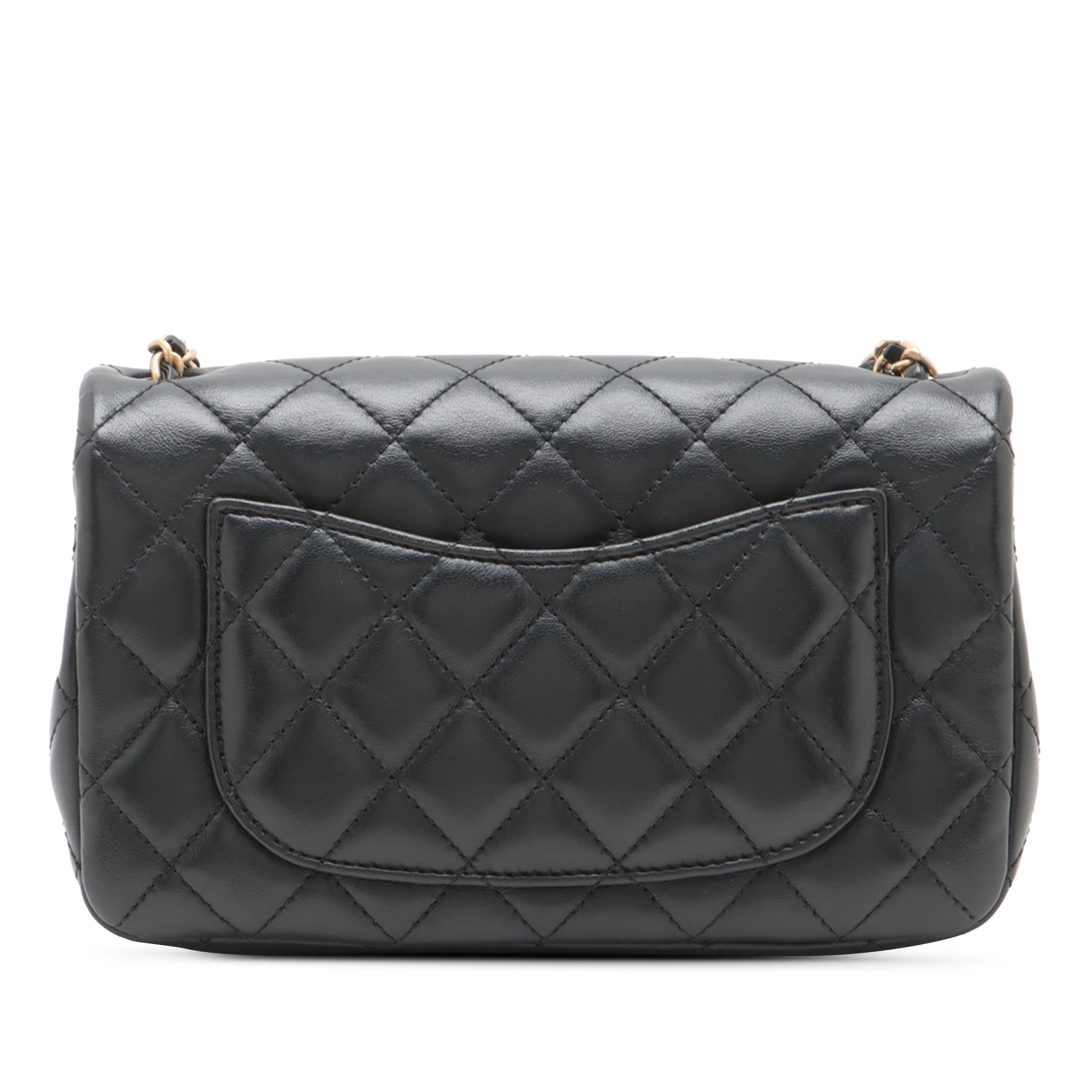 Chanel Mini Rectangular Classic Cuir d’agneau Romance Simple rabat Noir