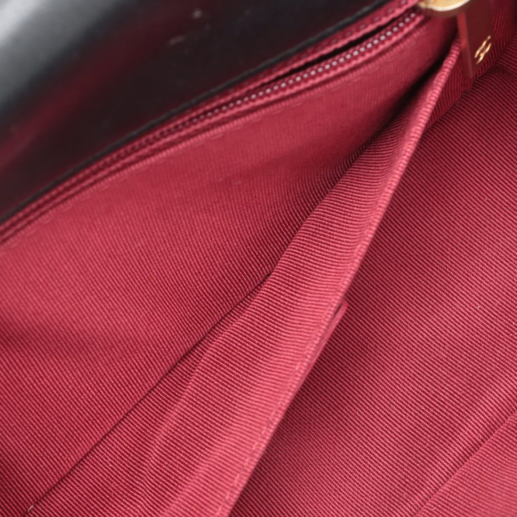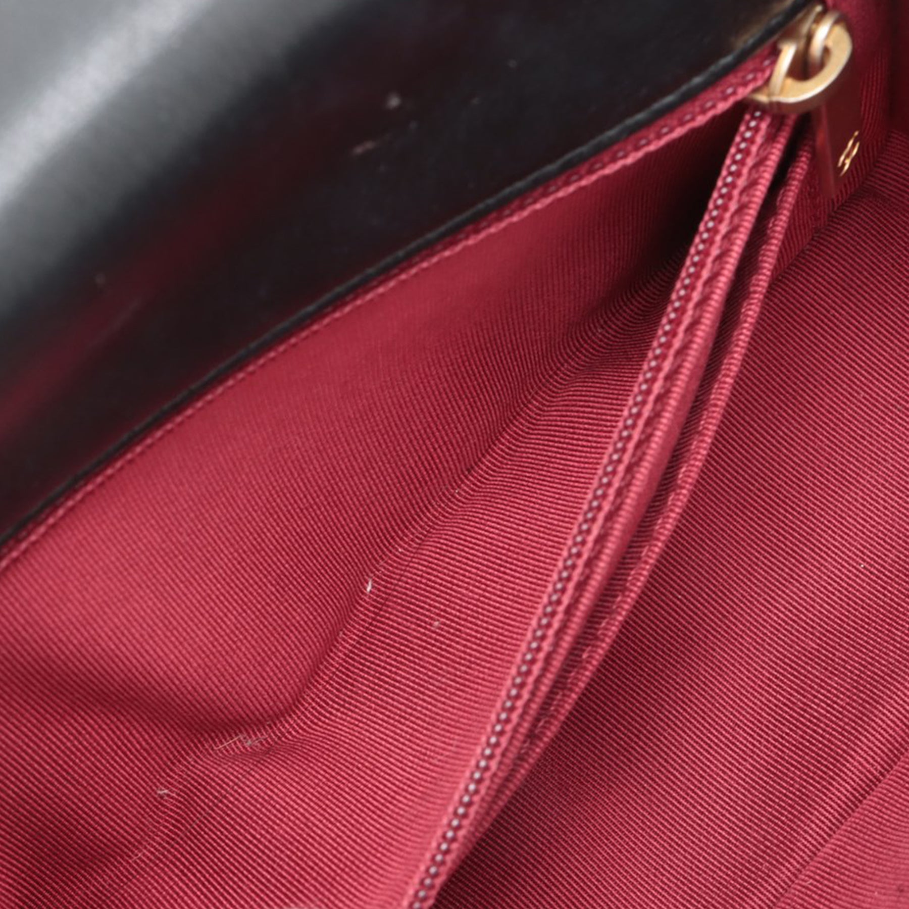 Ce sac bandoulière est confectionné en cuir d'agneau matelassé et possède une bandoulière en chaîne tressée ornée de volants, un rabat avant avec fermoir tourniquet, une poche plaquée extérieure au dos, ainsi que des poches intérieures zippées et plaquées. Il est en bon état.