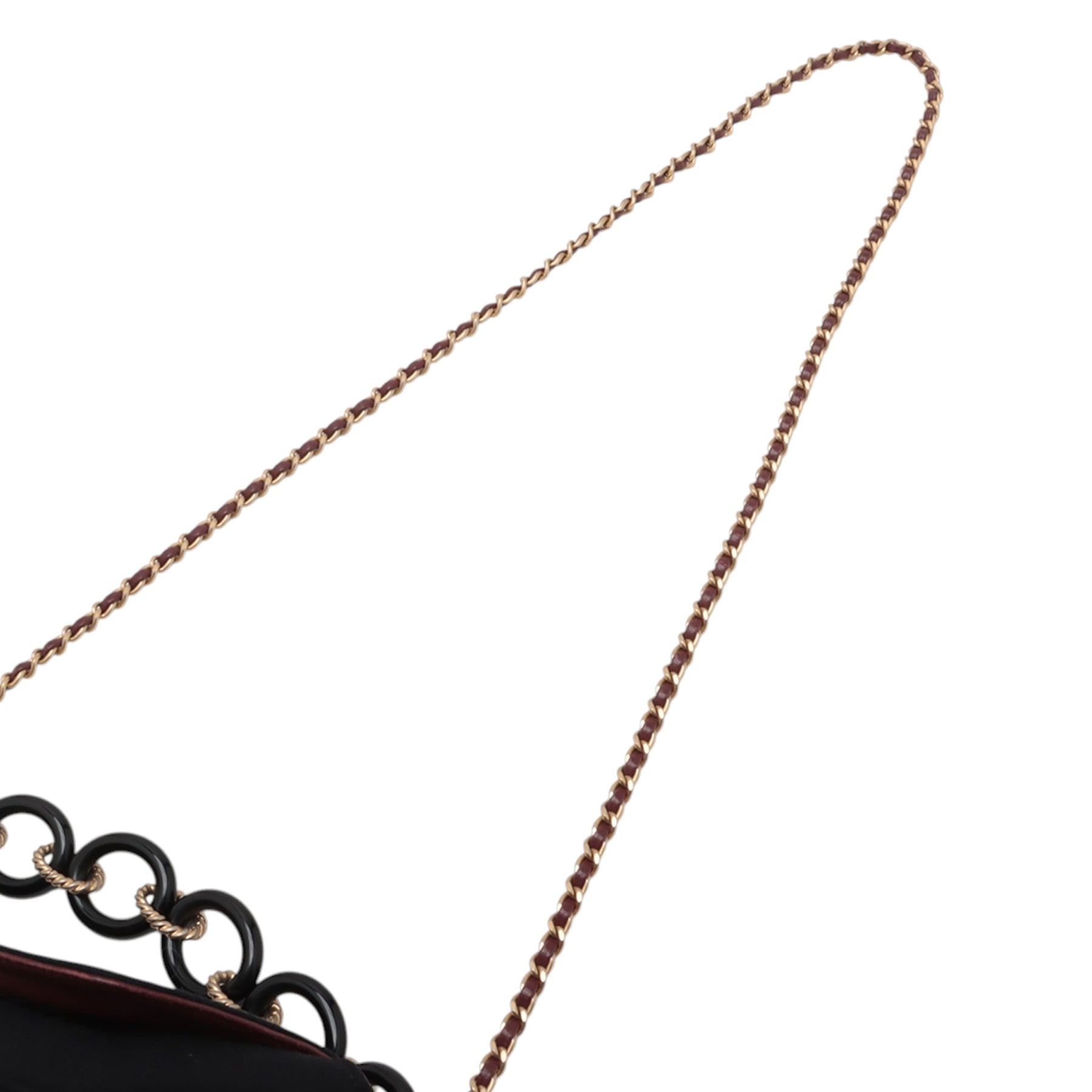 Ce sac seau est doté d'un corps en laine matelassée avec une bordure en cuir d'agneau, d'une anse en chaîne en résine, d'une bandoulière en cuir tressé, d'un rabat à fermeture magnétique et d'une poche intérieure. Il est en excellent état.