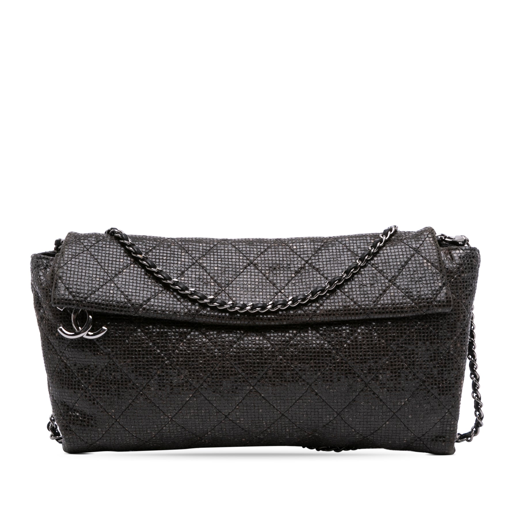 Chanel Matelassé Laminated Fabric Chain Evening Sac porté croisé